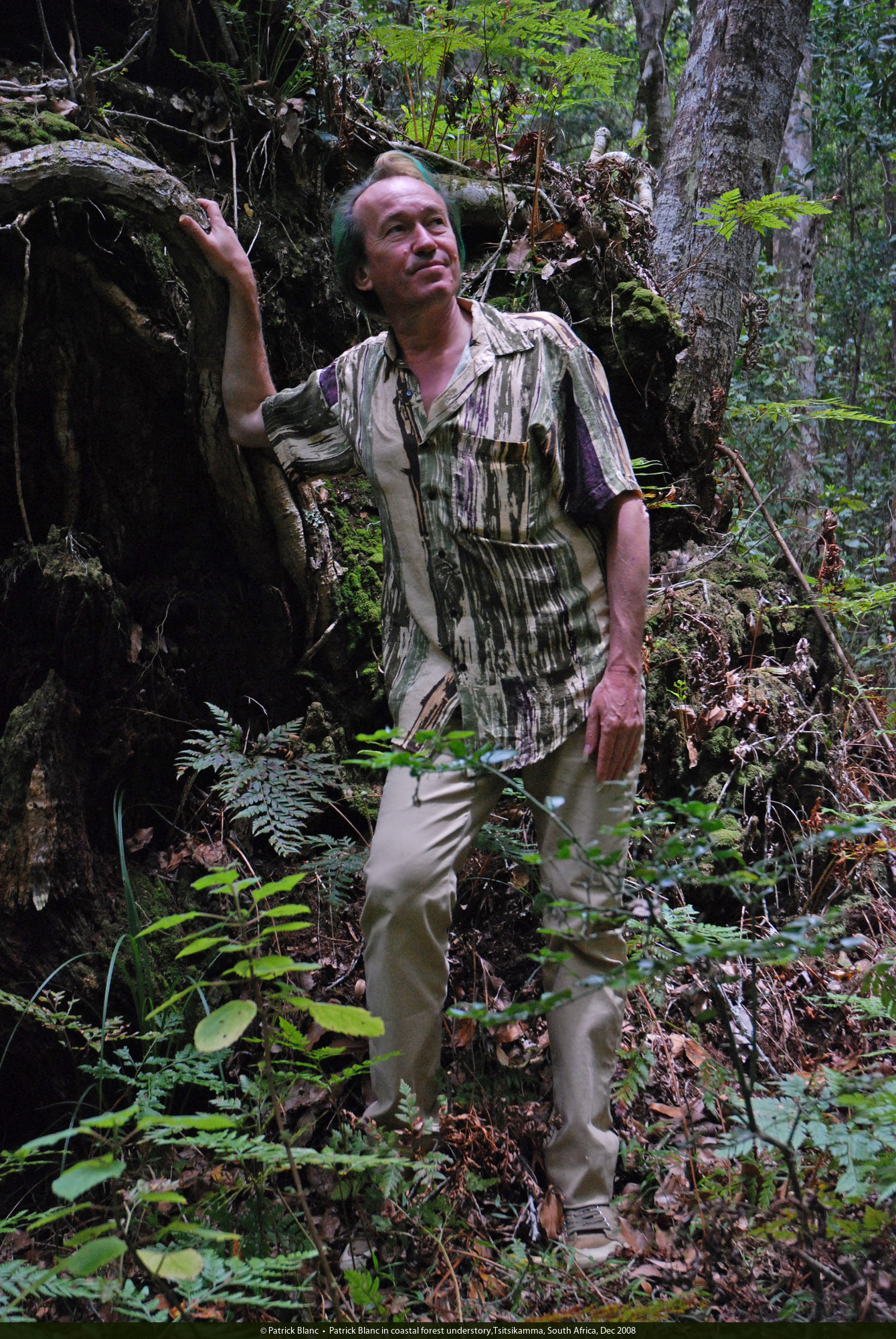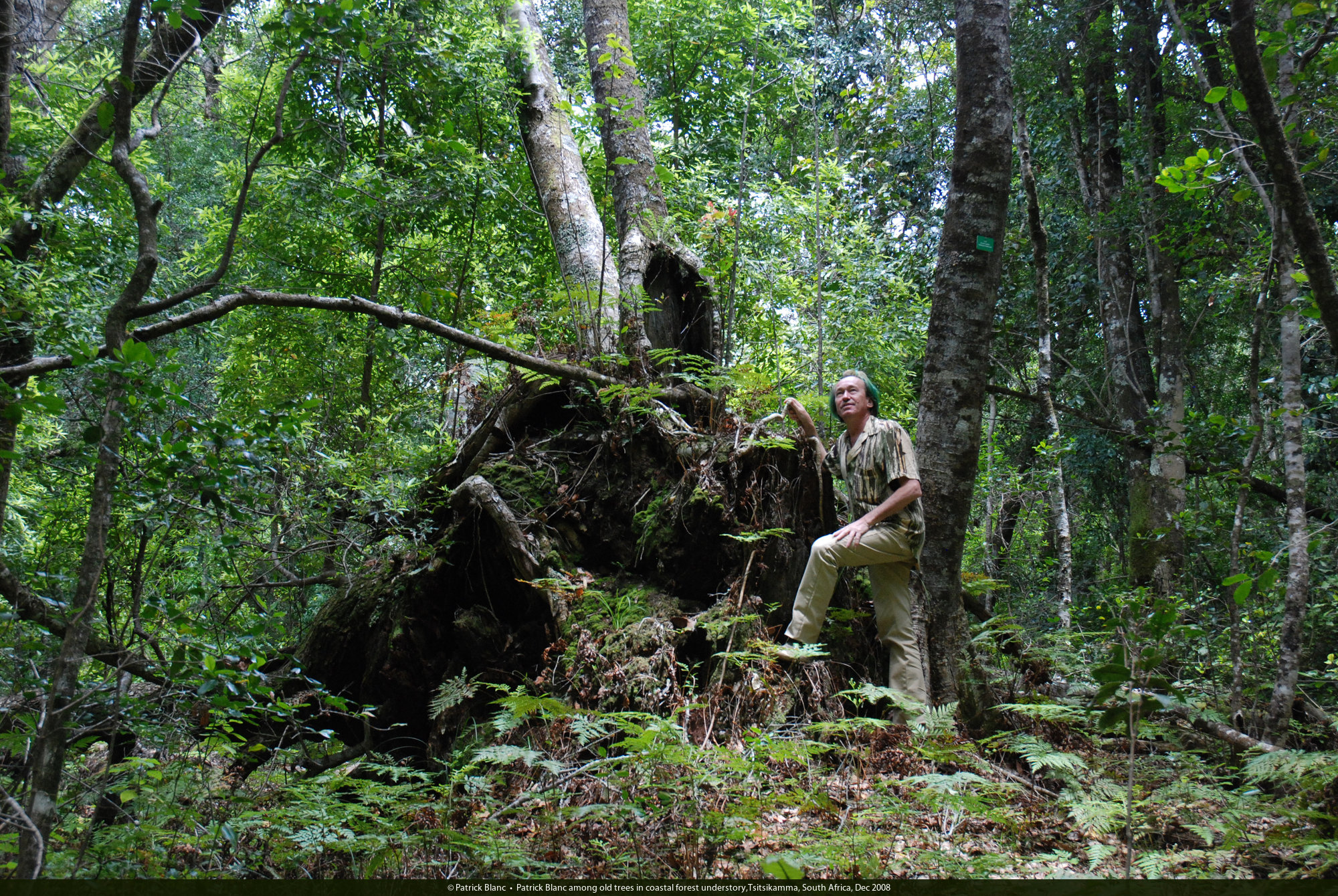 Patrick Blanc among old trees in coastal forest understory,Tsitsikamma, South Africa, Dec 2008