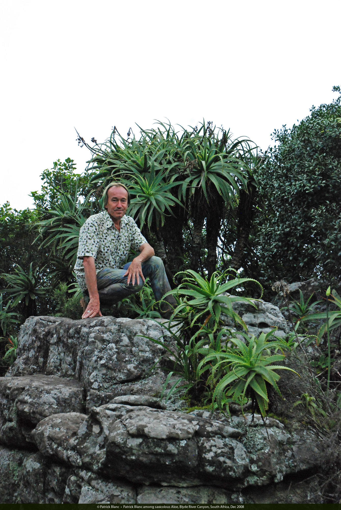 Patrick Blanc among saxicolous Aloe, Blyde River Canyon, South Africa, Dec 2008