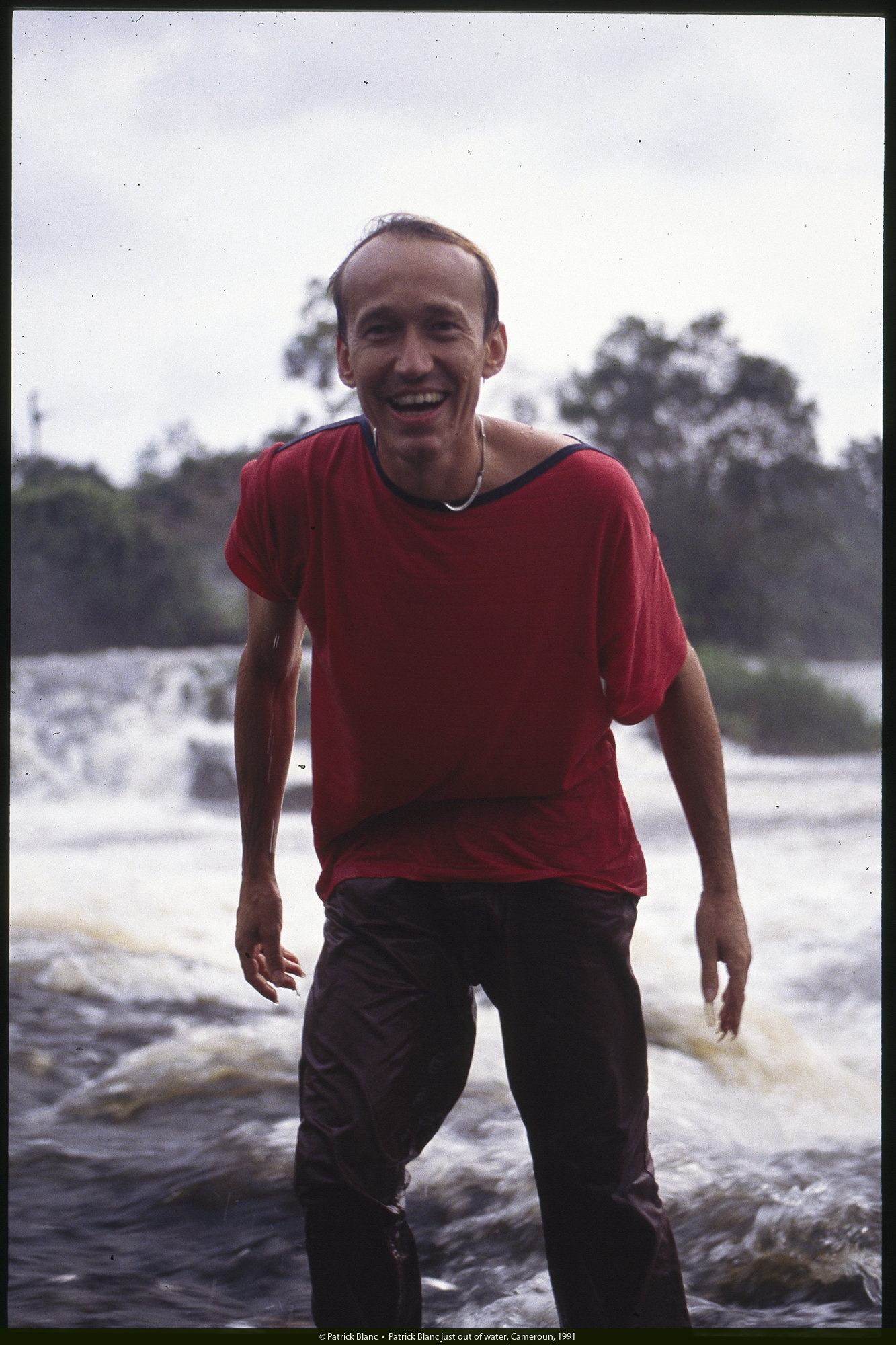 Patrick Blanc just out of water, Cameroun, 1991