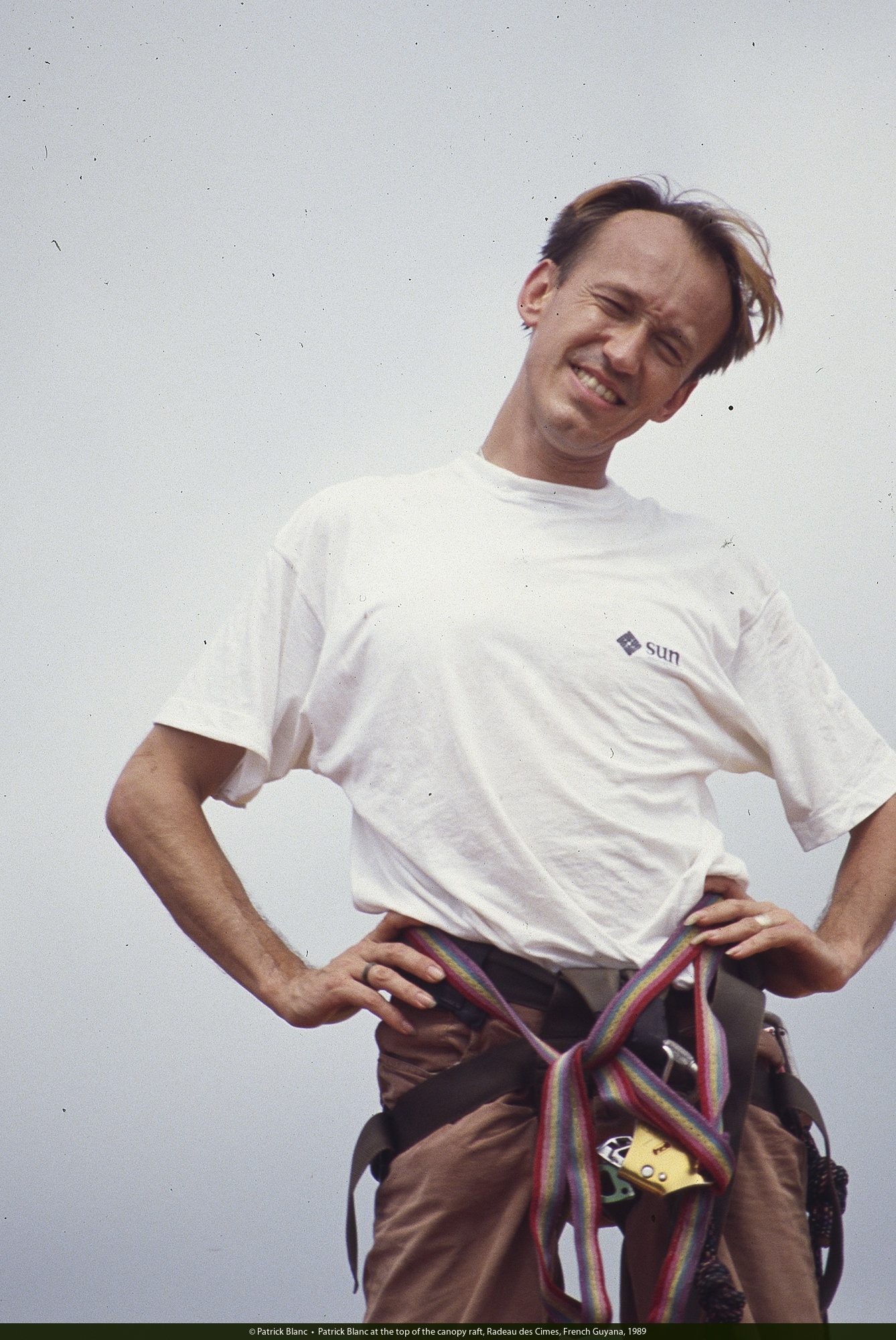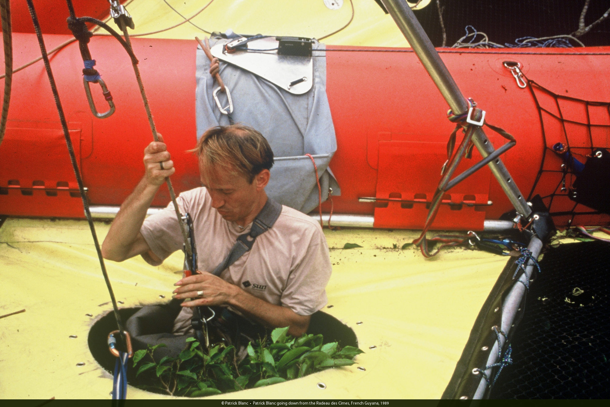 Patrick Blanc on the Radeau des Cimes, Canopy Raft, Campo, Cameroun, 1991