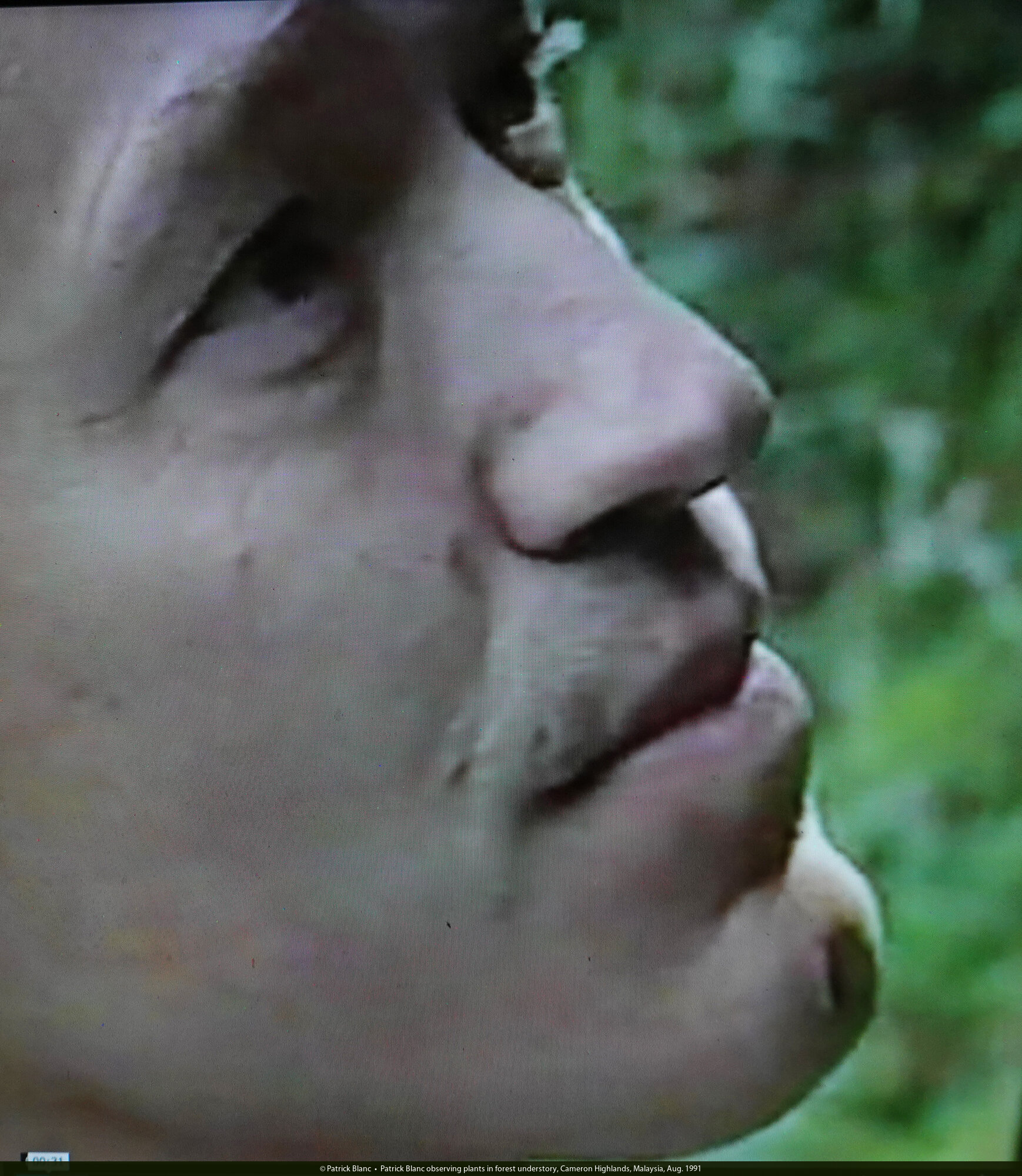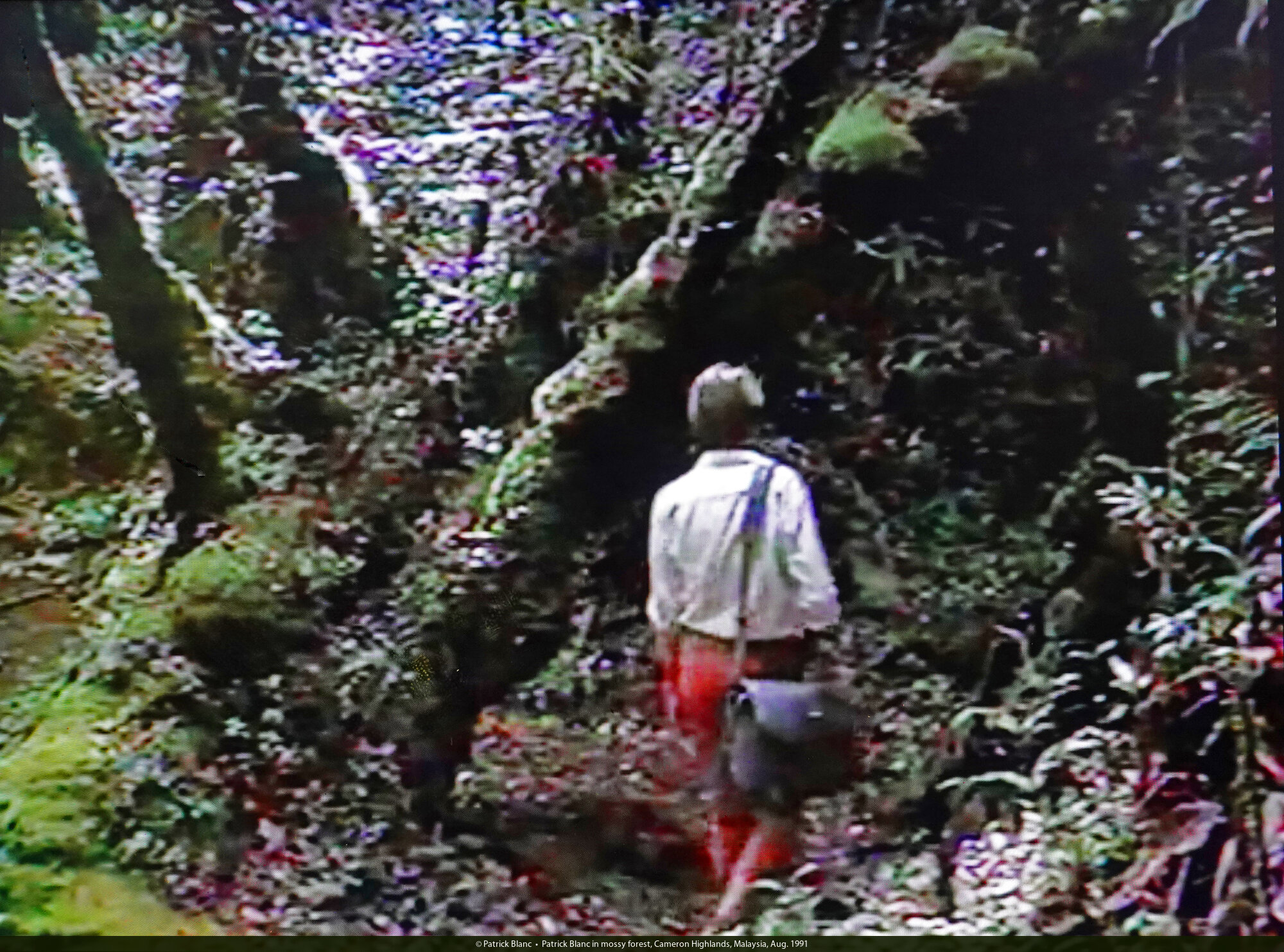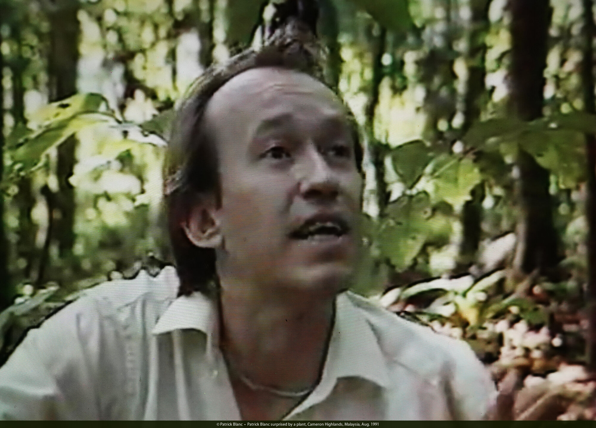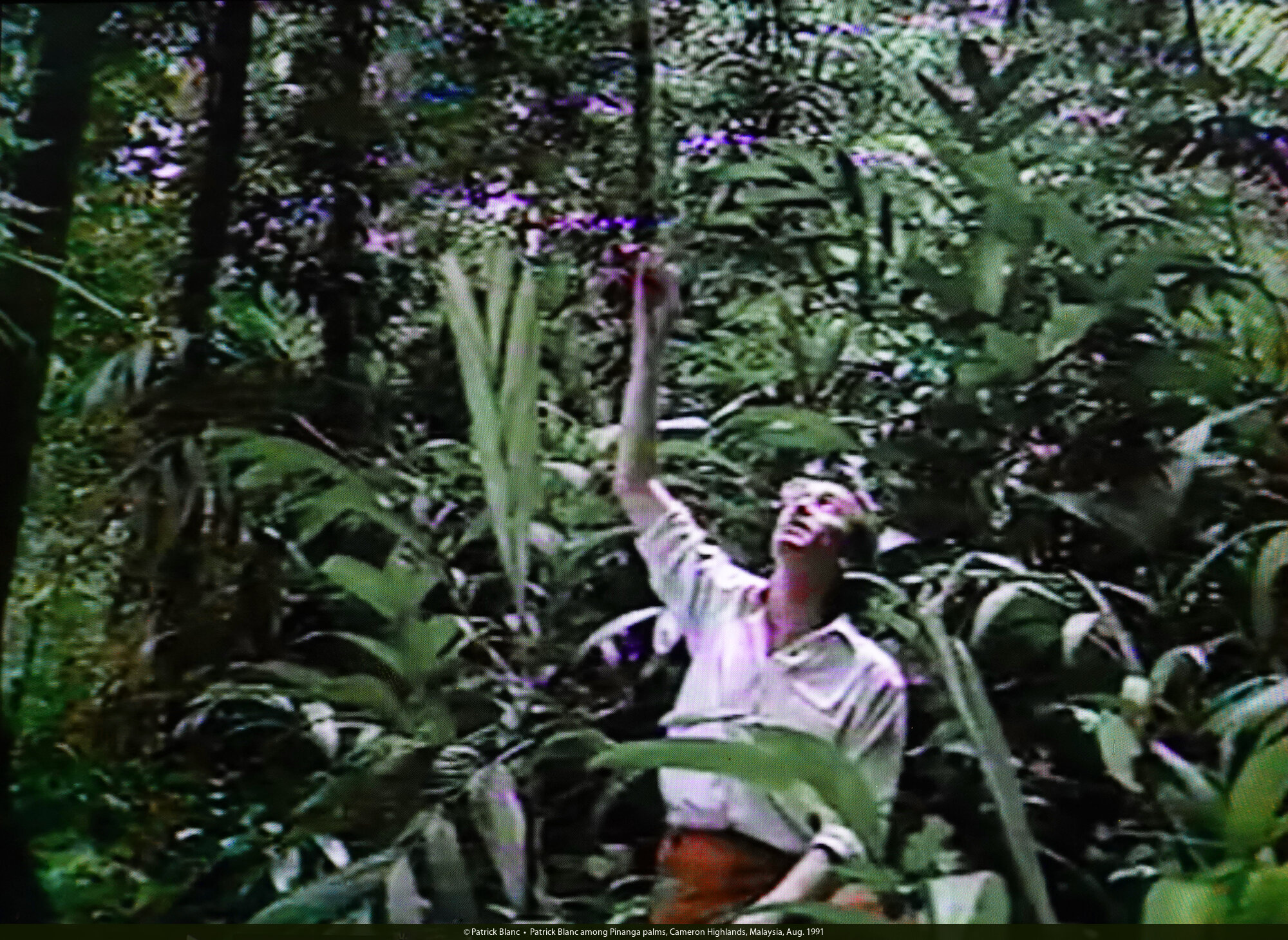 Patrick Blanc surprised by a plant, Cameron Highlands, Malaysia, Aug. 1991