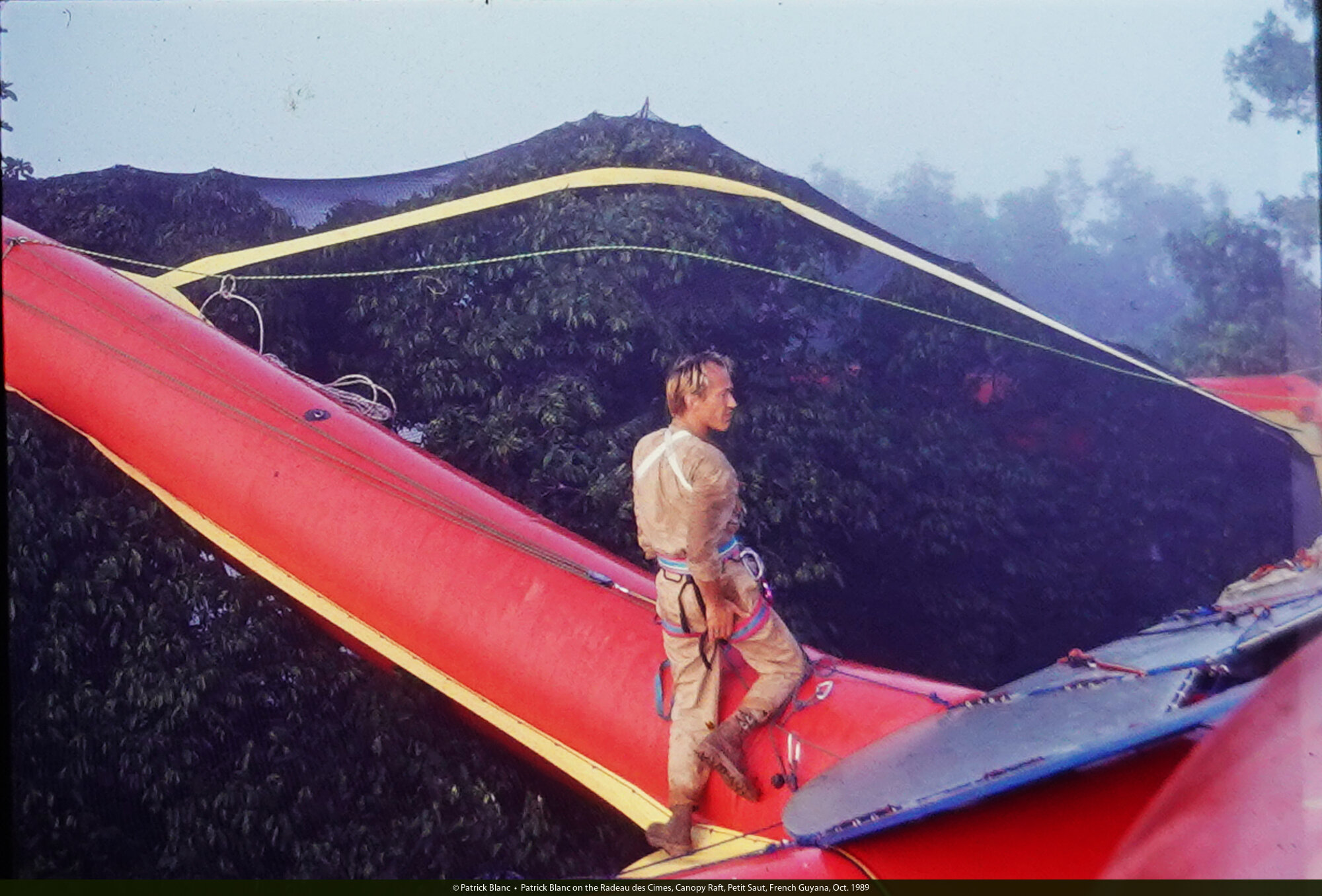 Patrick Blanc on the Canopy Raft, Radeau des Cimes, French Guyana, Oct. 1989