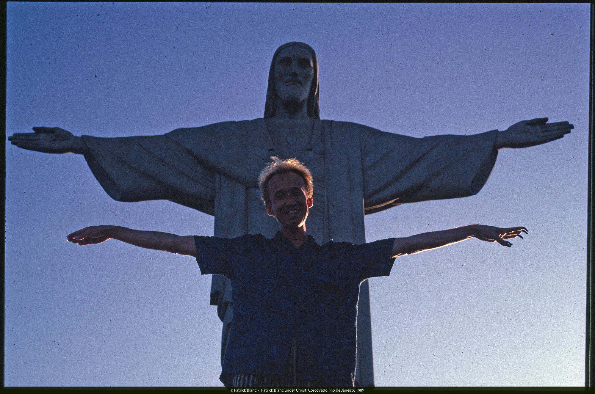 Patrick Blanc under Christ, Corcovado, Rio de Janeiro, Aug. 1989