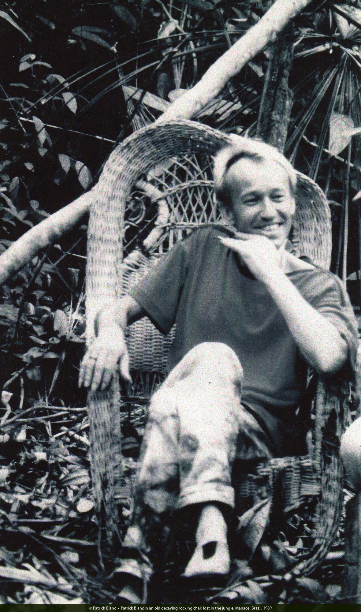 Patrick Blanc in an old decaying rocking chair lost in the jungle, Manaos, Brazil, Aug. 1989