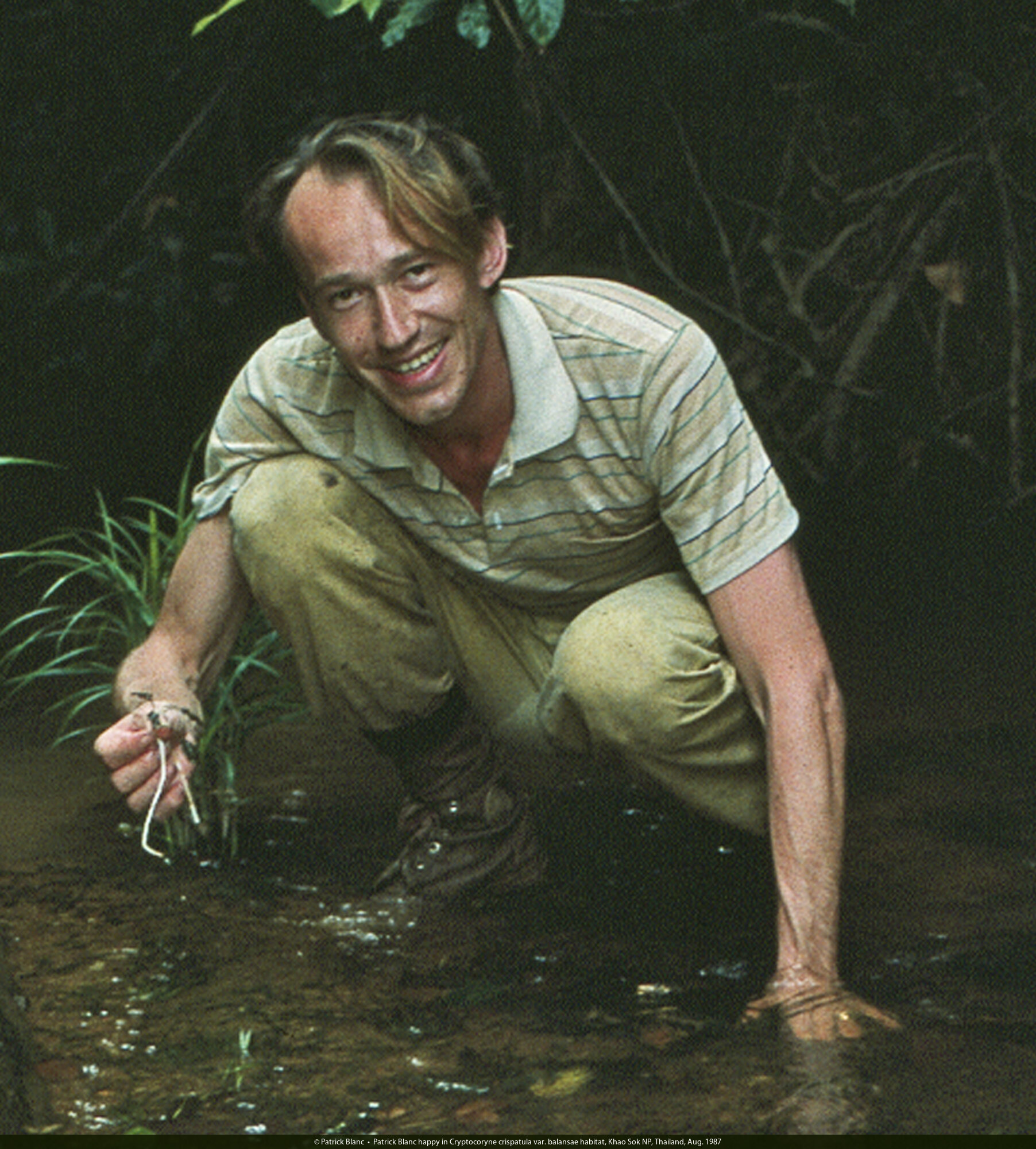 Patrick Blanc in Cryptocoryne crispatula var. balansae river habitat, Khao Sok NP, Thailand, Aug. 1987