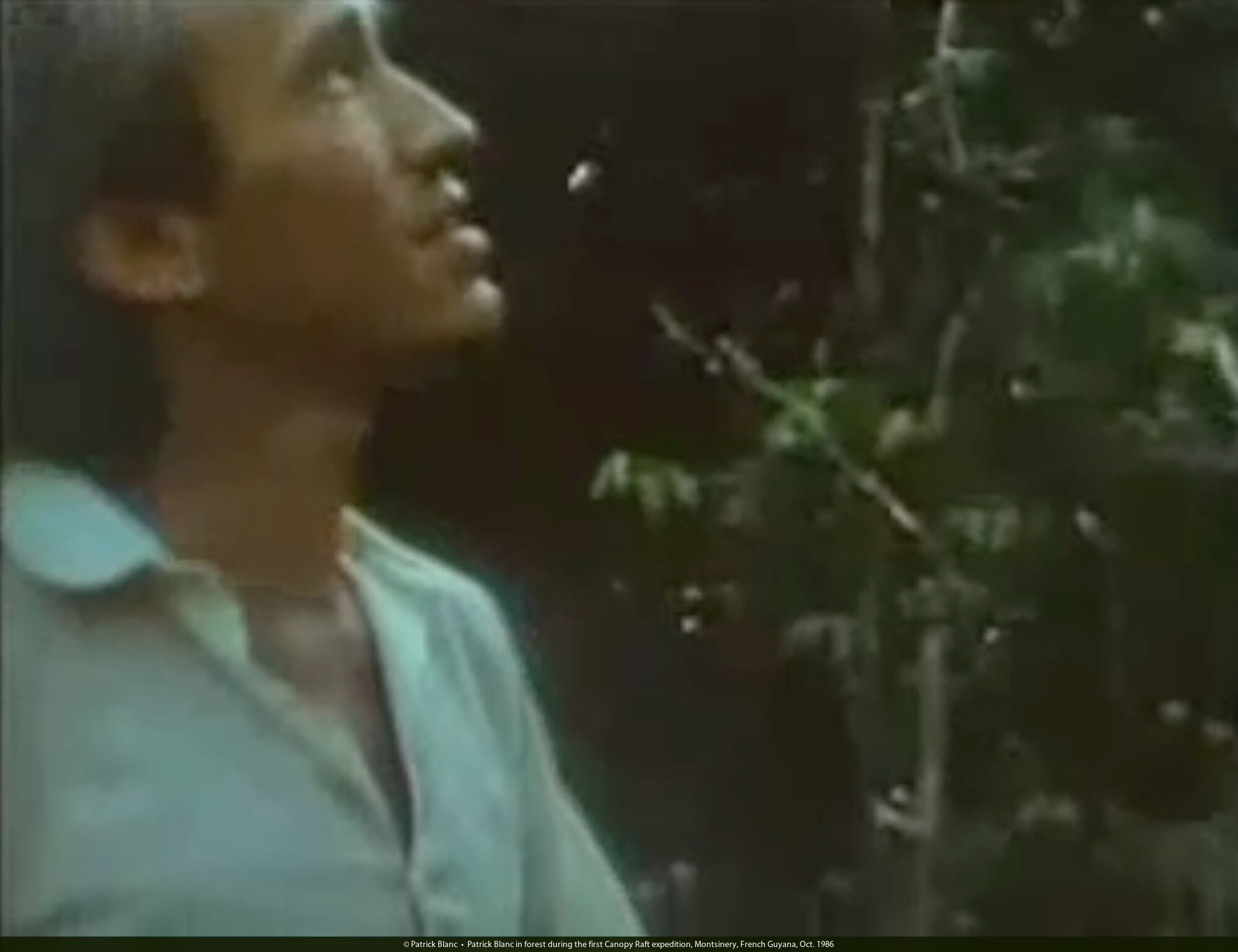 Patrick Blanc in forest during the first Canopy Raft expedition, Montsinery, French Guyana, Oct. 1986