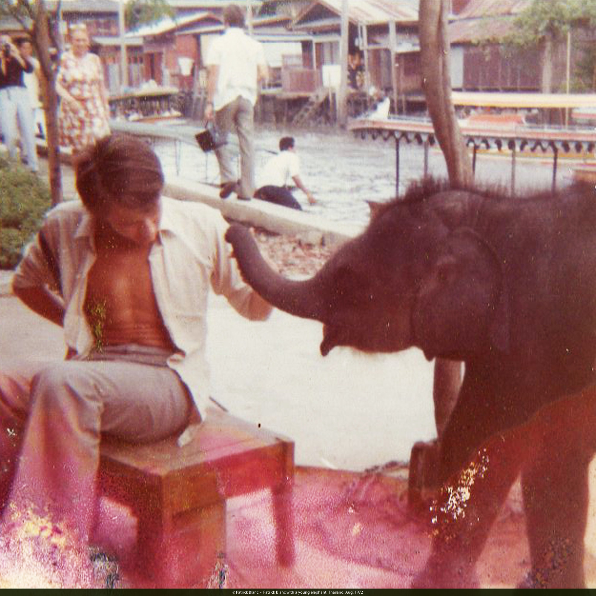 Patrick Blanc with a young elephant, Thailand, Aug. 1972