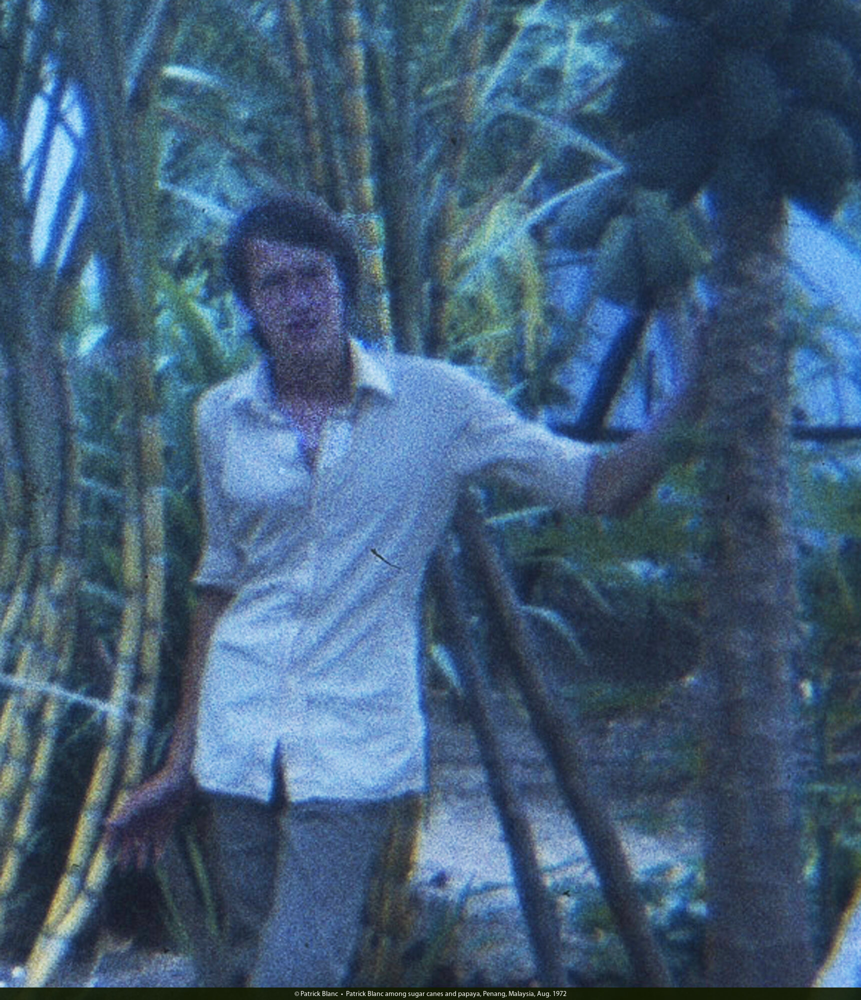 Patrick Blanc among sugar canes and papaya, Penang, Malaysia, Aug. 1972