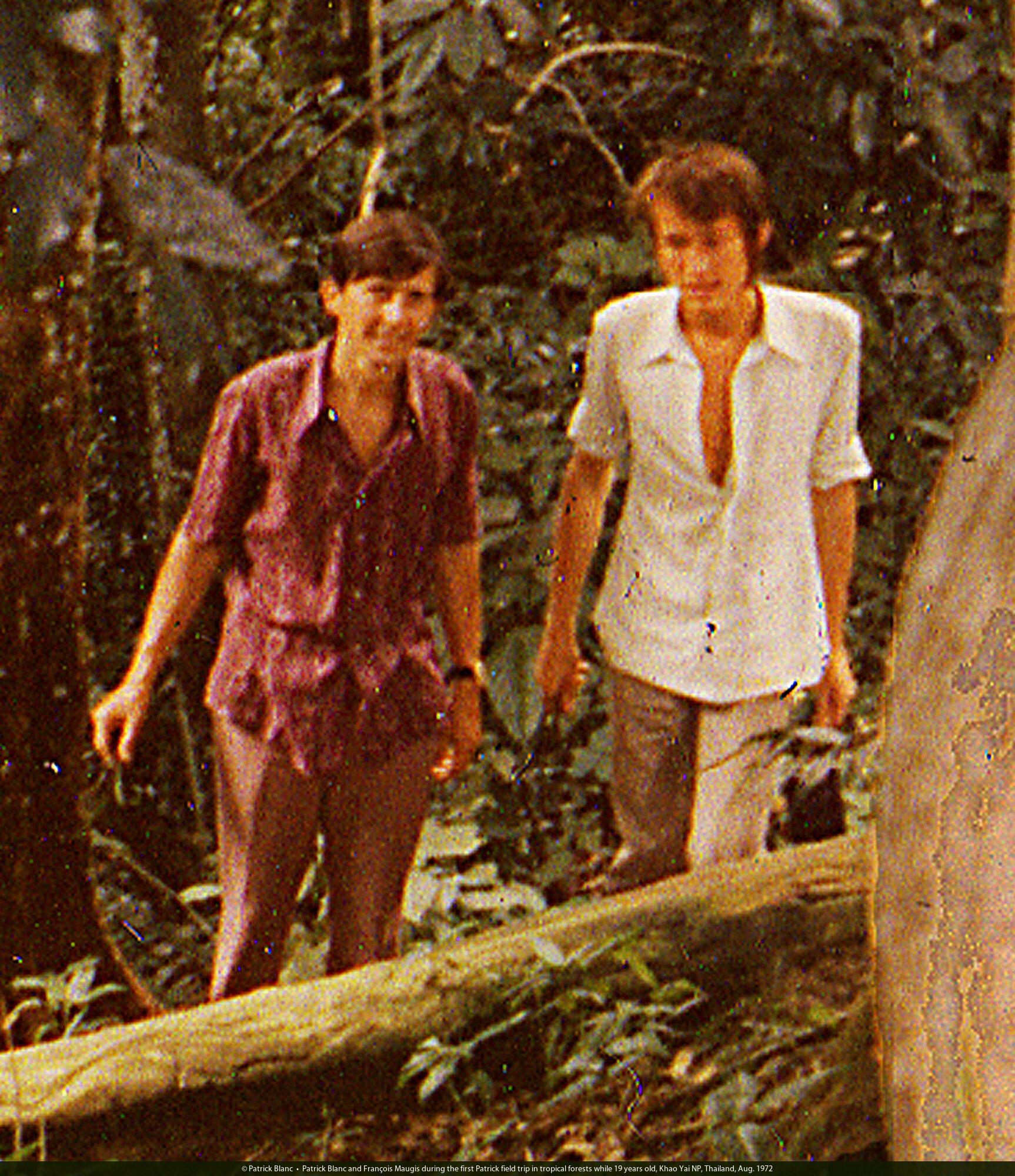 Patrick Blanc and François Maugis during the first Patrick field trip in tropical forests while 19 years old, Khao Yai NP, Thailand, Aug. 1972