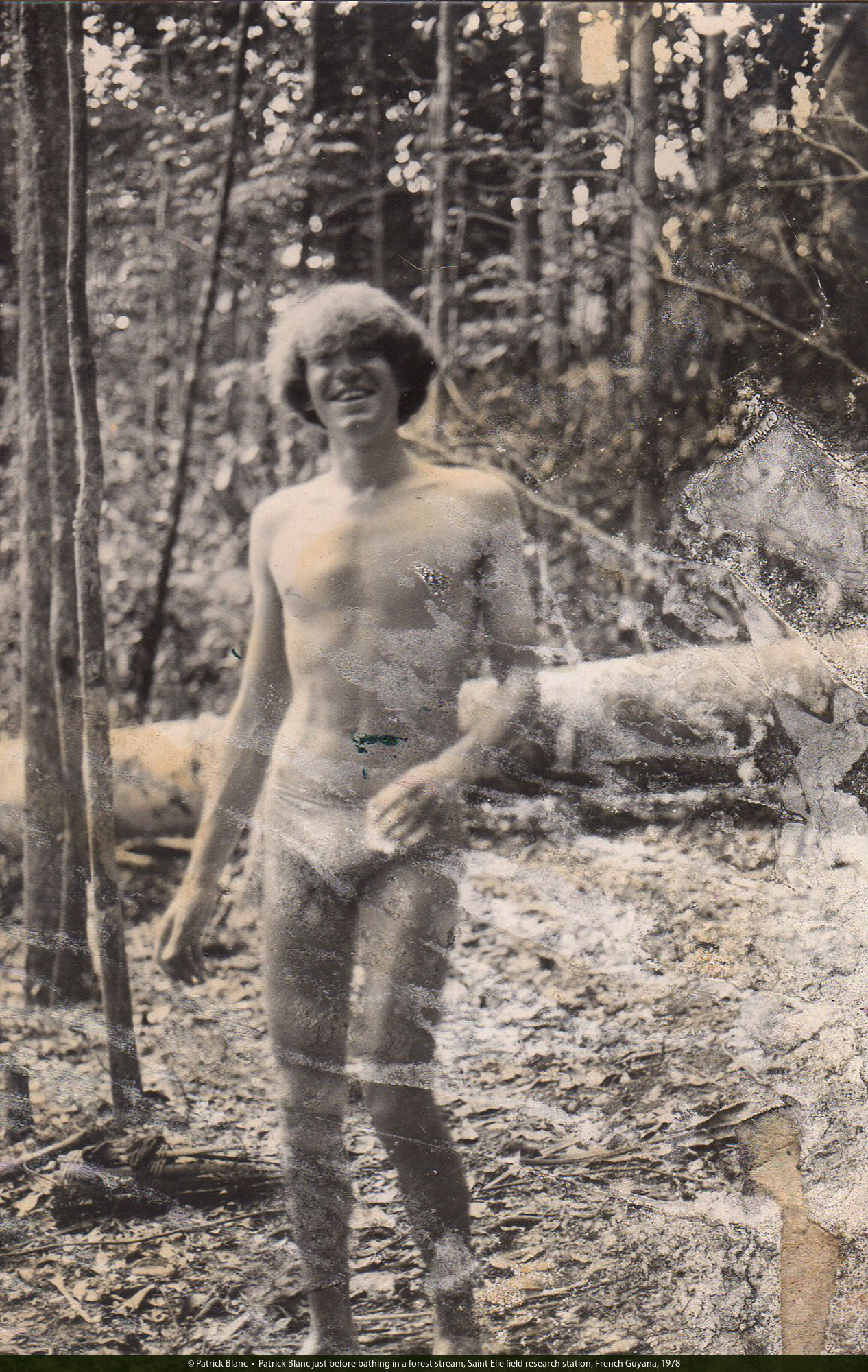 Patrick Blanc just before bathing in a forest stream, Saint Elie field research station, French Guyana, Fev. 1978