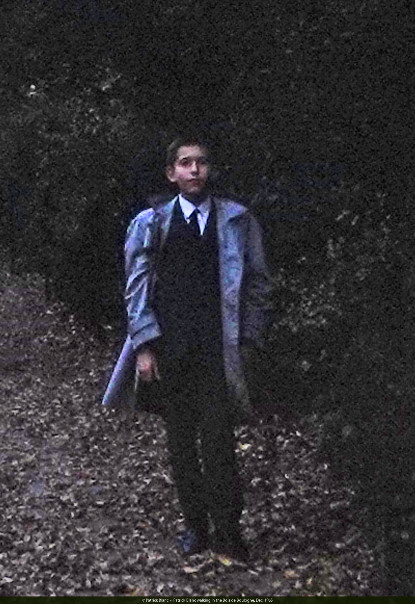 Patrick Blanc walking in the Bois de Boulogne, Dec. 1965
