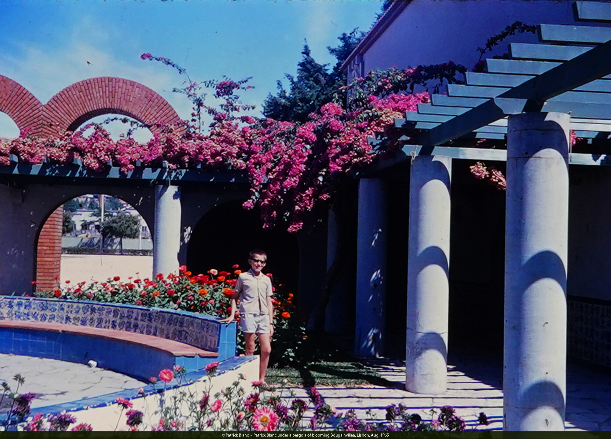 Patrick Blanc under a pergola of blooming Bougainvillea, Lisbon, Aug. 1965