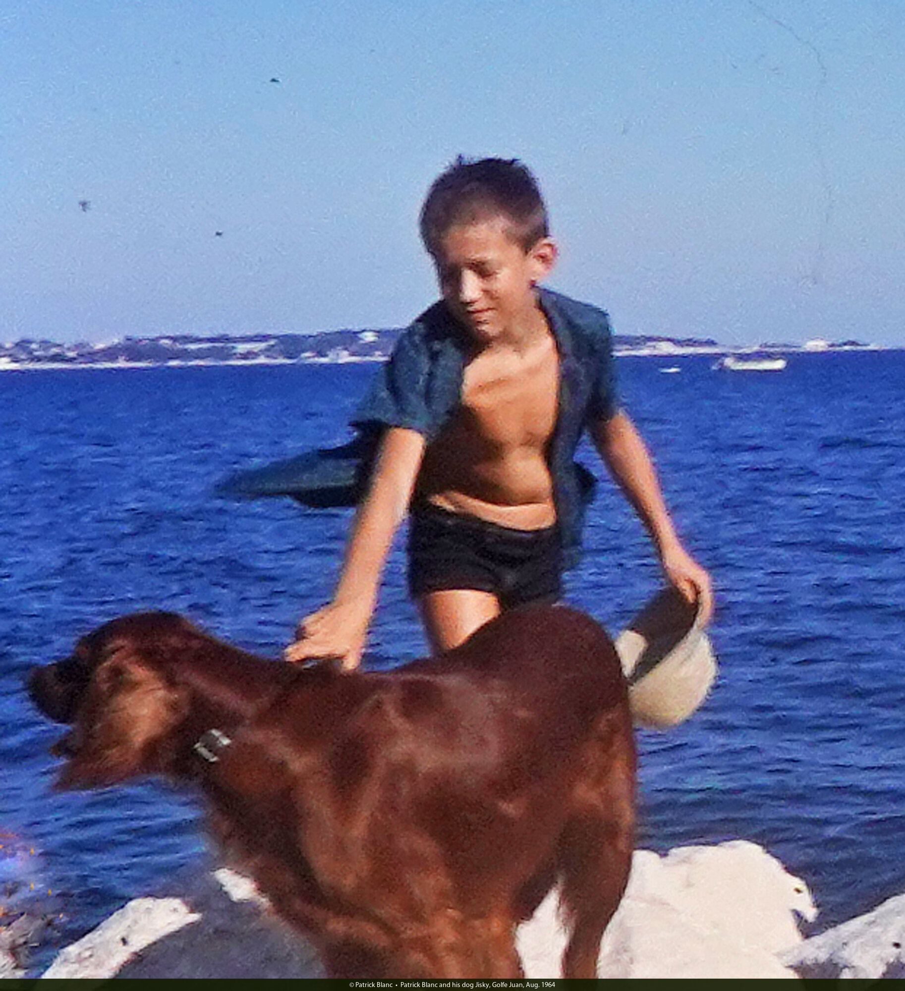 Patrick Blanc and his dog Jisky, Golfe Juan, Aug. 1964
