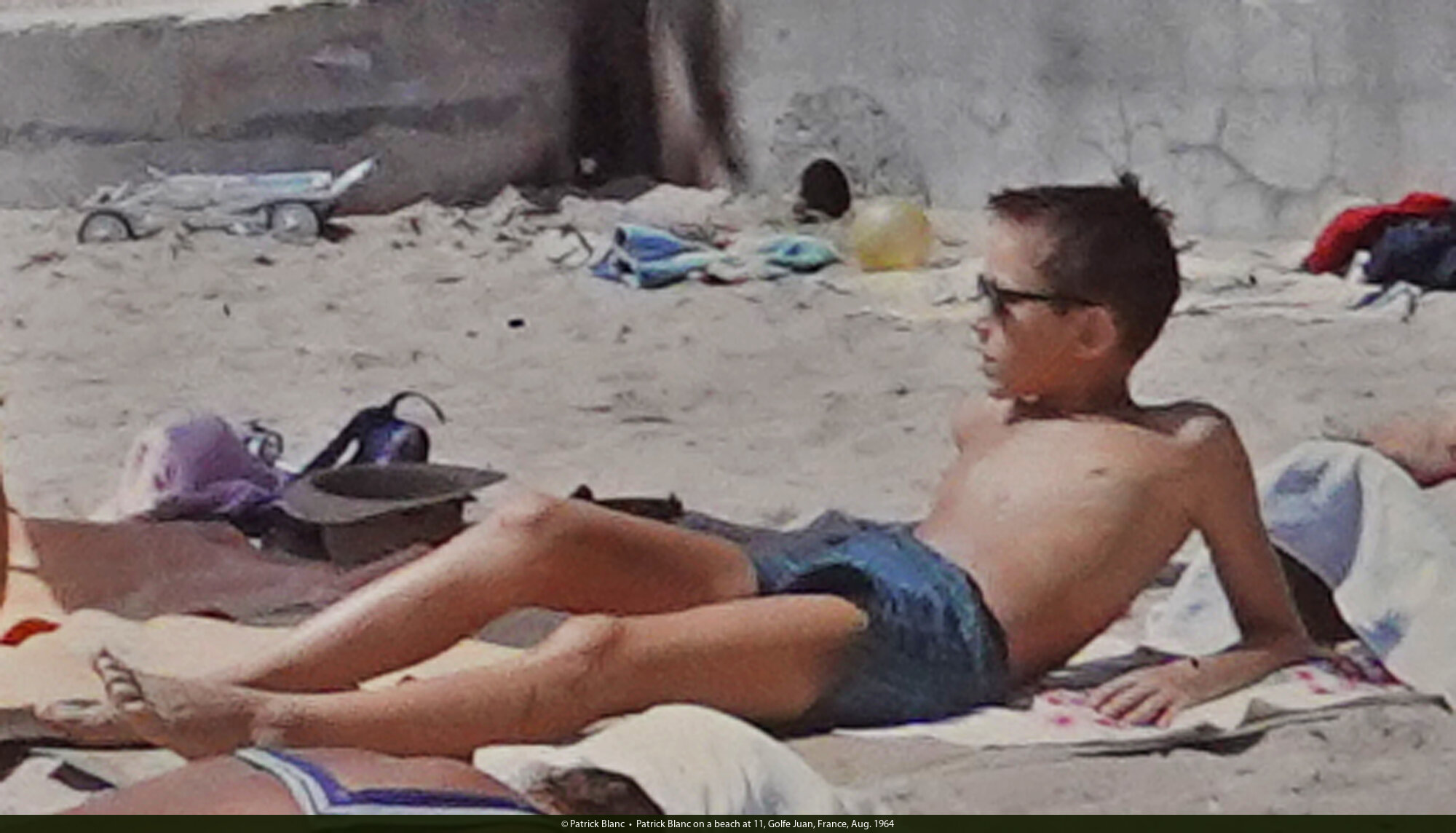 Patrick Blanc on a beach at 11, Golfe Juan, France, Aug. 1964