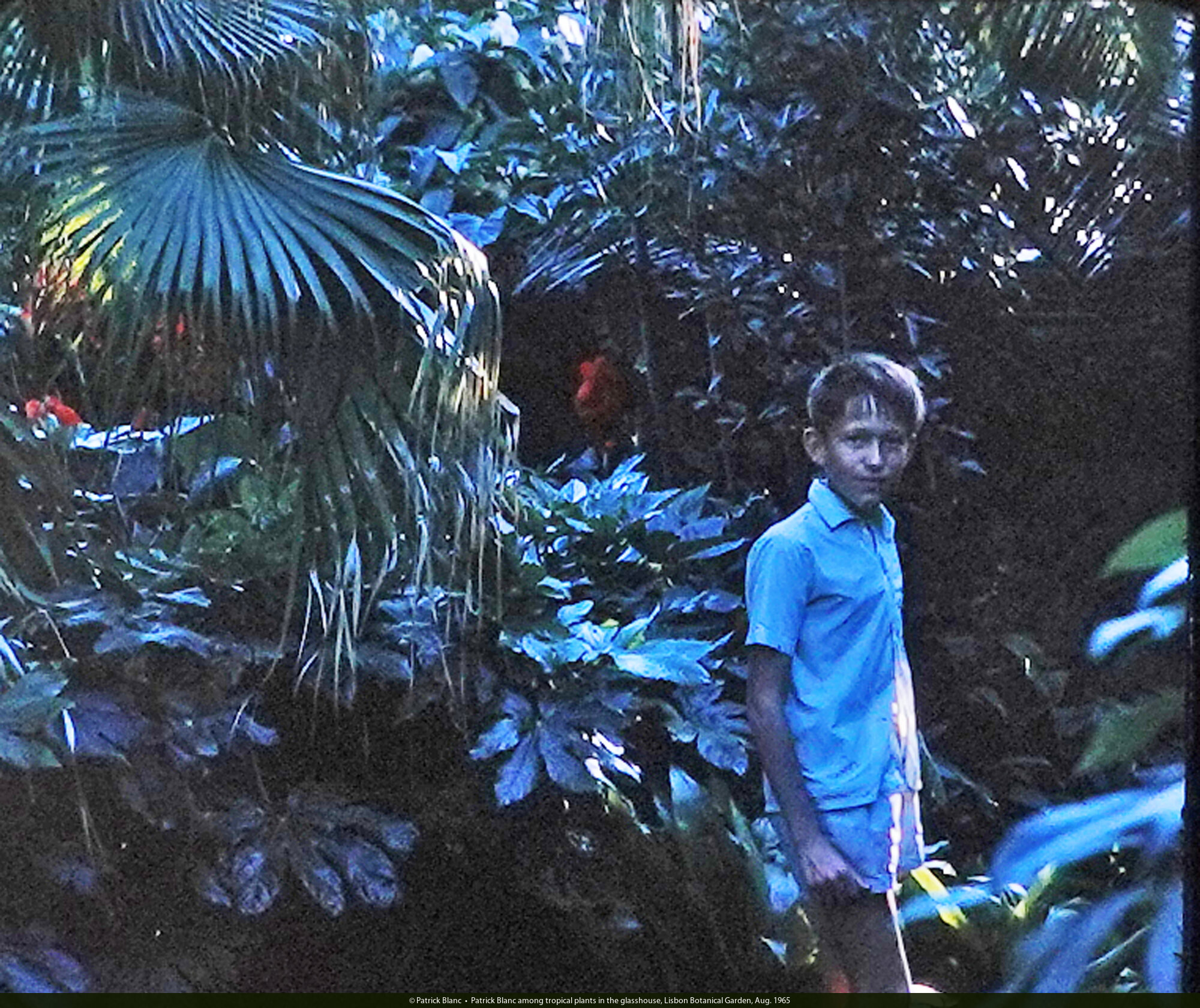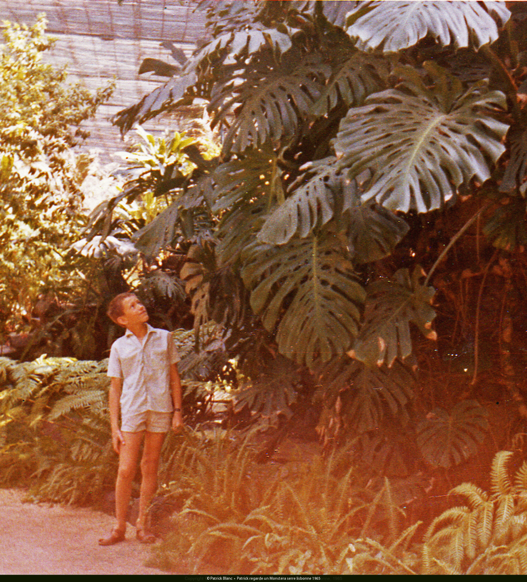 Patrick Blanc at 12 looking at Monstera deliciosa, Lisbon botanical garden, 1965