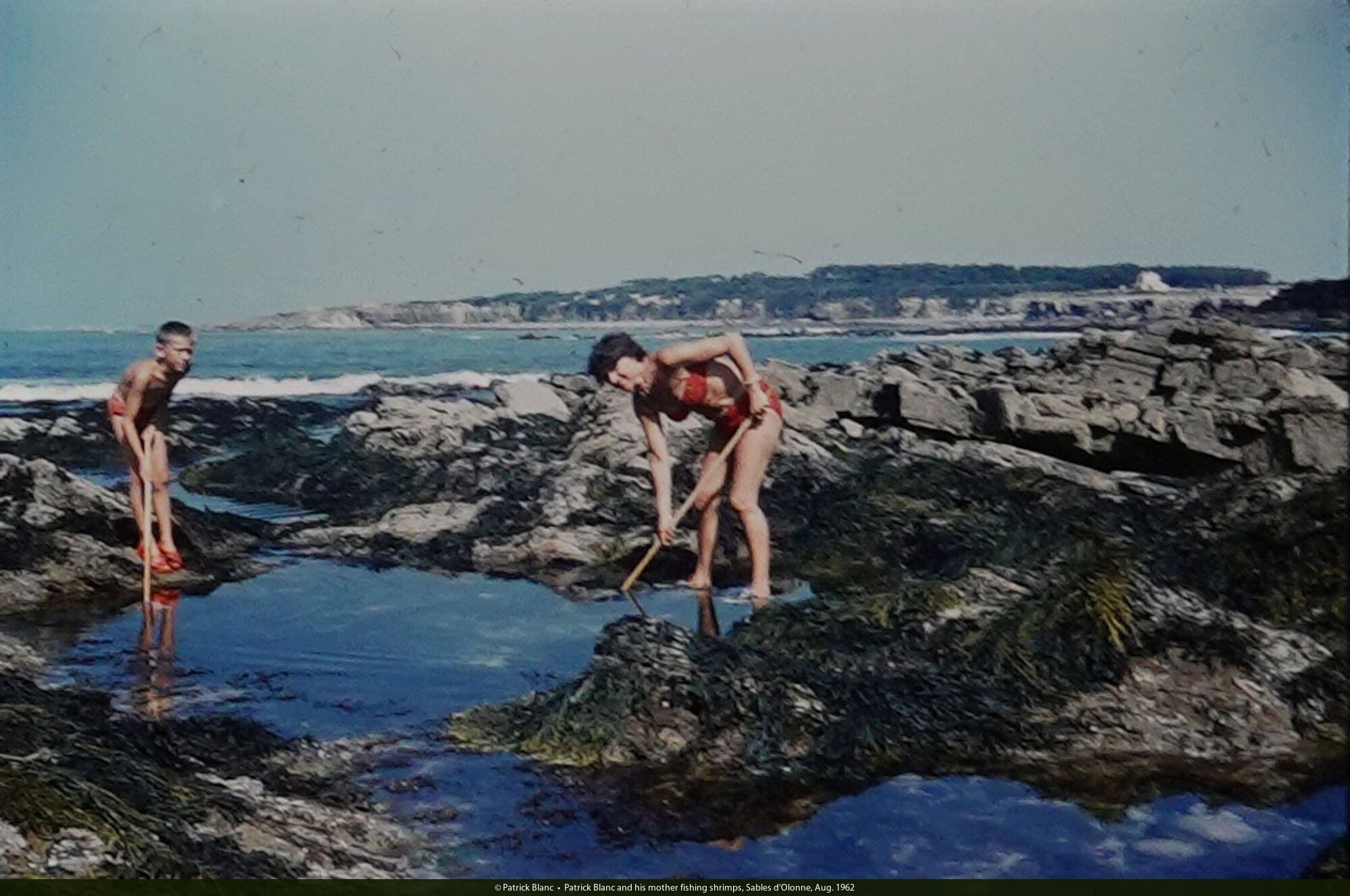 Patrick Blanc and his mother fishing shrimps, Sables d'Olonne, Aug. 1962