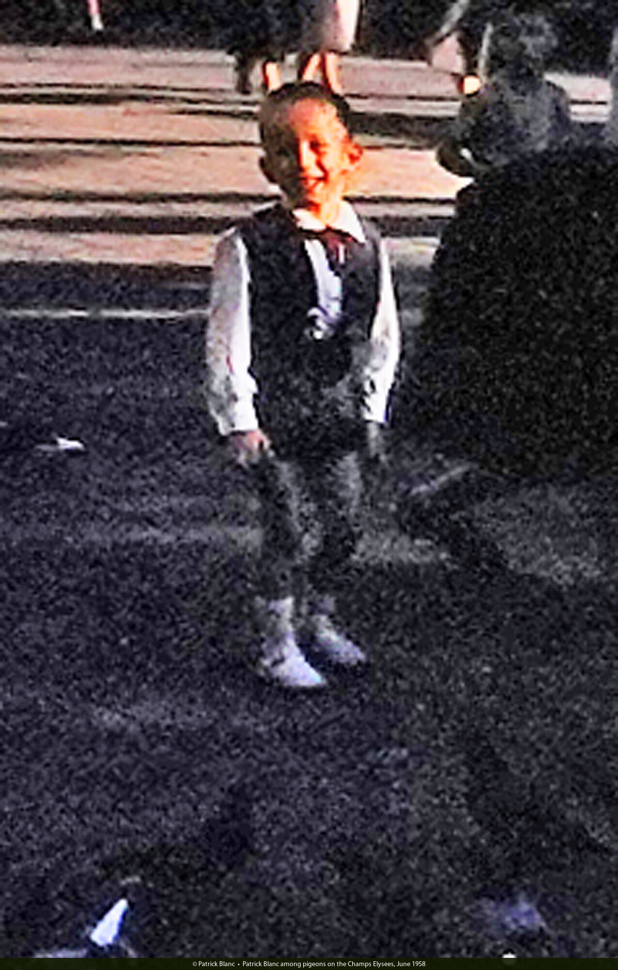 Patrick Blanc among pigeons on the Champs Elysees, June 1958