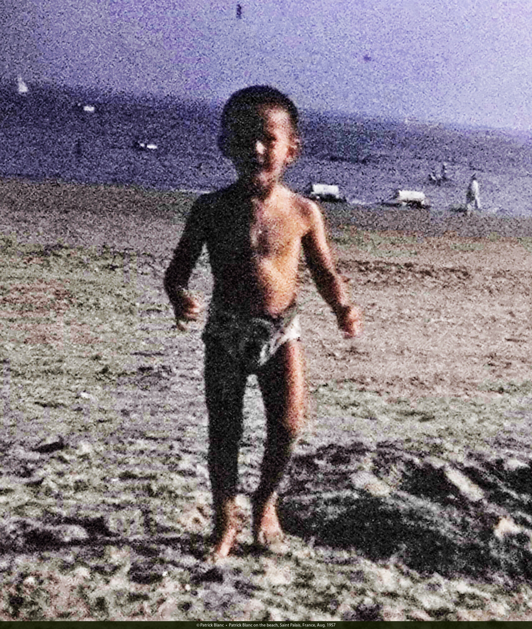 Patrick Blanc on the beach, Saint Palais, France, Aug. 1957