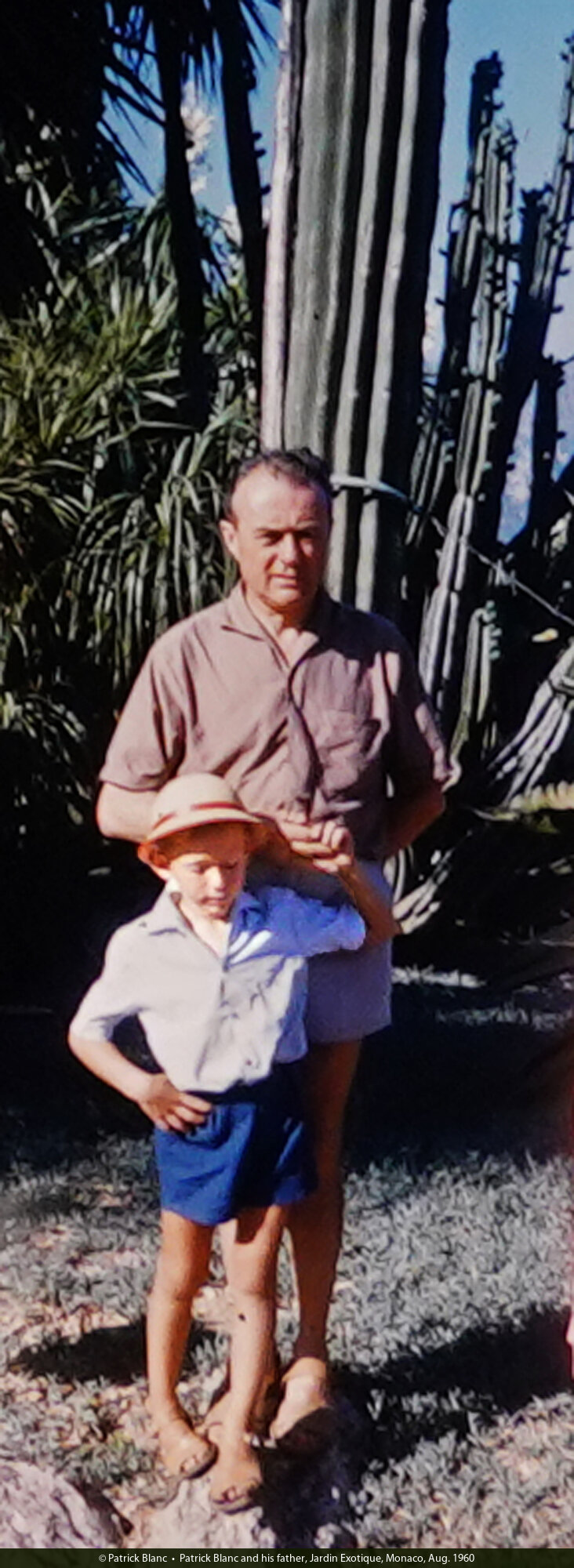 Patrick Blanc and his father, Jardin Exotique, Monaco, Aug. 1960