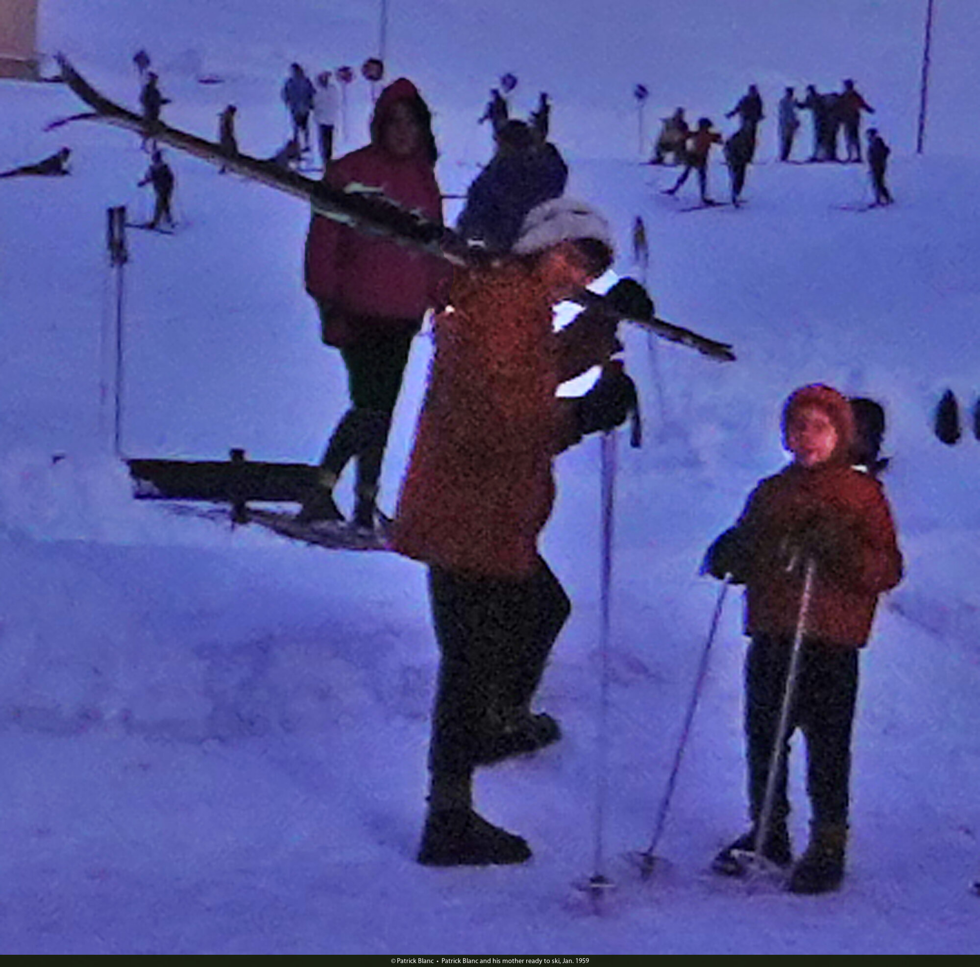 Patrick Blanc and his mother ready to ski, Jan. 1959