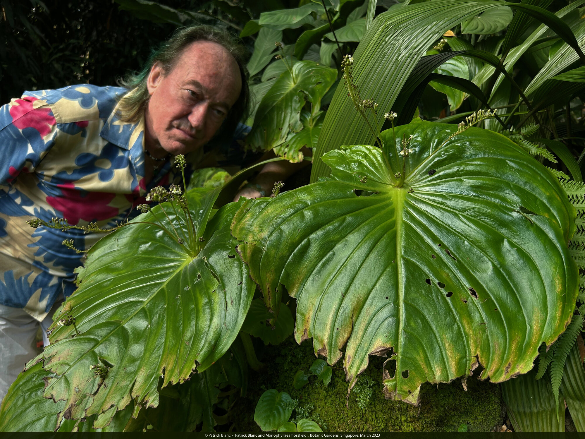 Patrick Blanc and Monophyllaea horsfieldii, Botanic Gardens, Singapore, March 2023