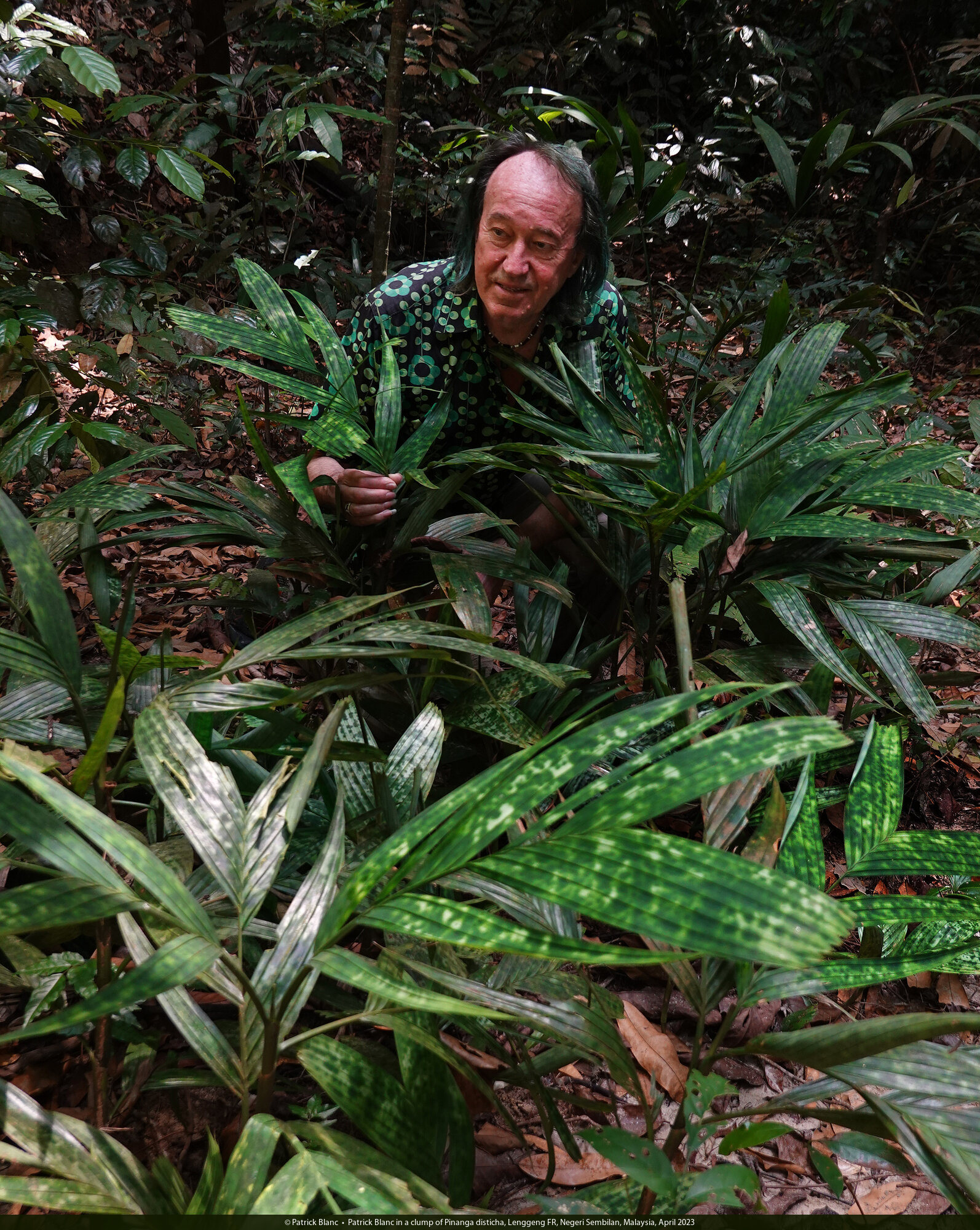 Patrick Blanc in a clump of Pinanga disticha, Lenggeng FR, Negeri Sembilan, Malaysia, April 2023