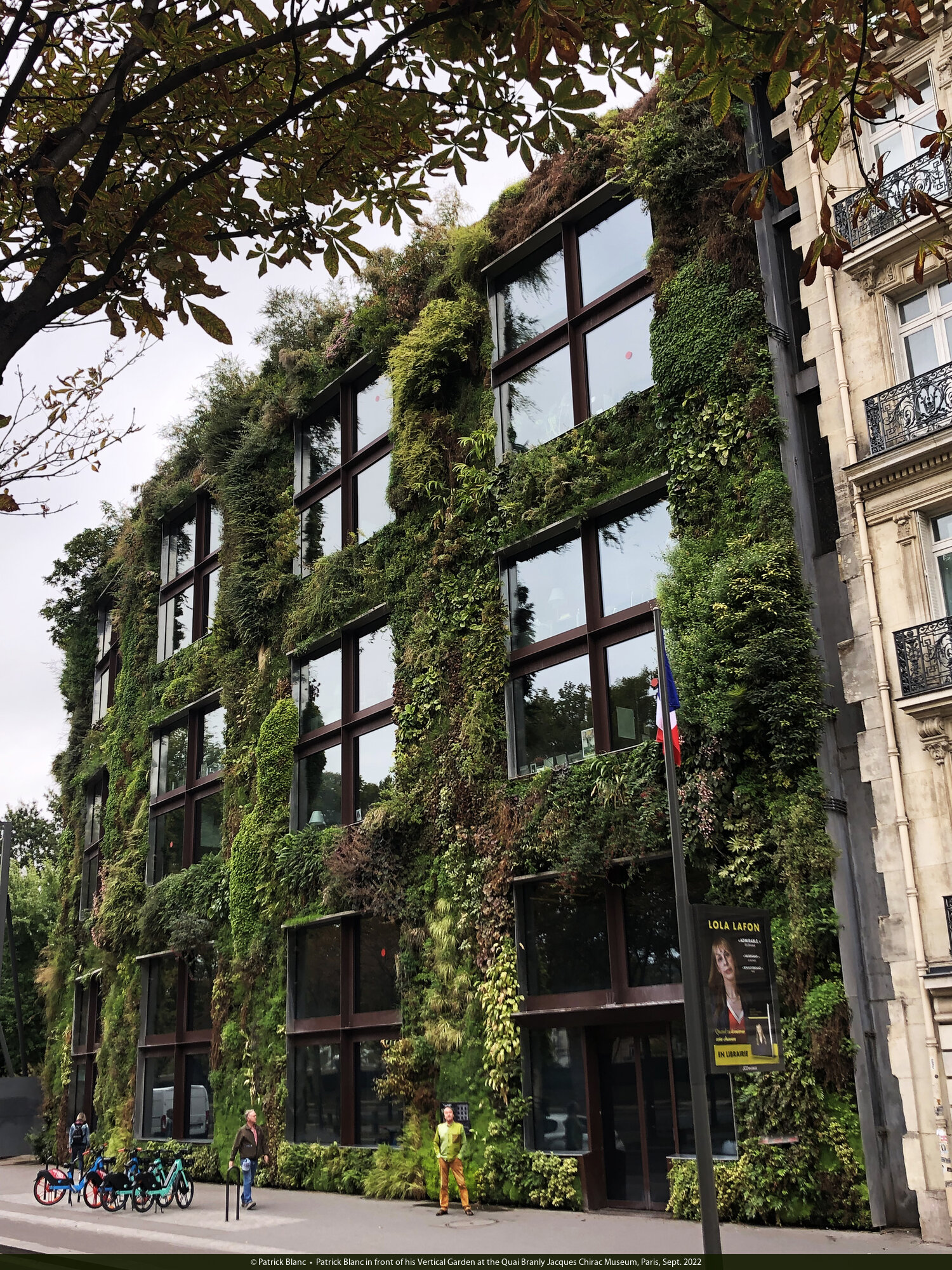 Patrick Blanc in front of his Vertical Garden at the Quai Branly Jacques Chirac Museum, Paris, Sept. 2022