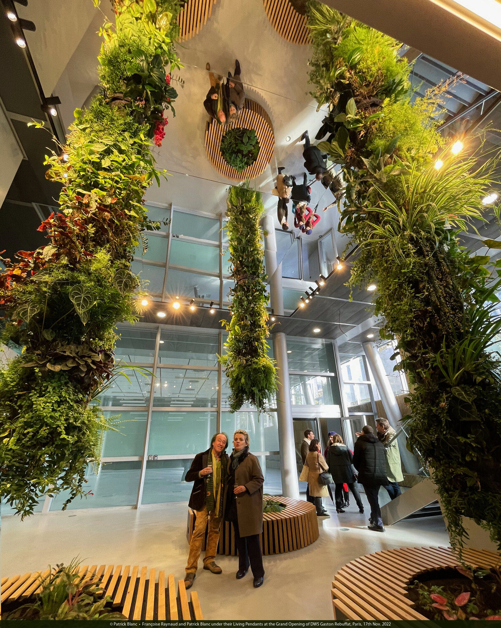 Françoise Raynaud and Patrick Blanc under their Living Pendants at the Grand Opening of DWS Gaston Rebuffat, Paris, 17th Nov. 2022