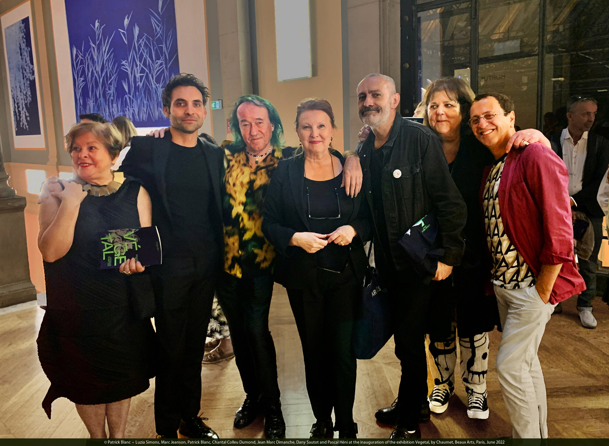Luzia Simons, Marc Jeanson, Patrick Blanc, Chantal Colleu Dumond, Jean Marc Dimanche, Dany Sautot and Pascal Héni at the inauguration of the exhibition Vegetal, by Chaumet, Beaux Arts, Paris, June 2022