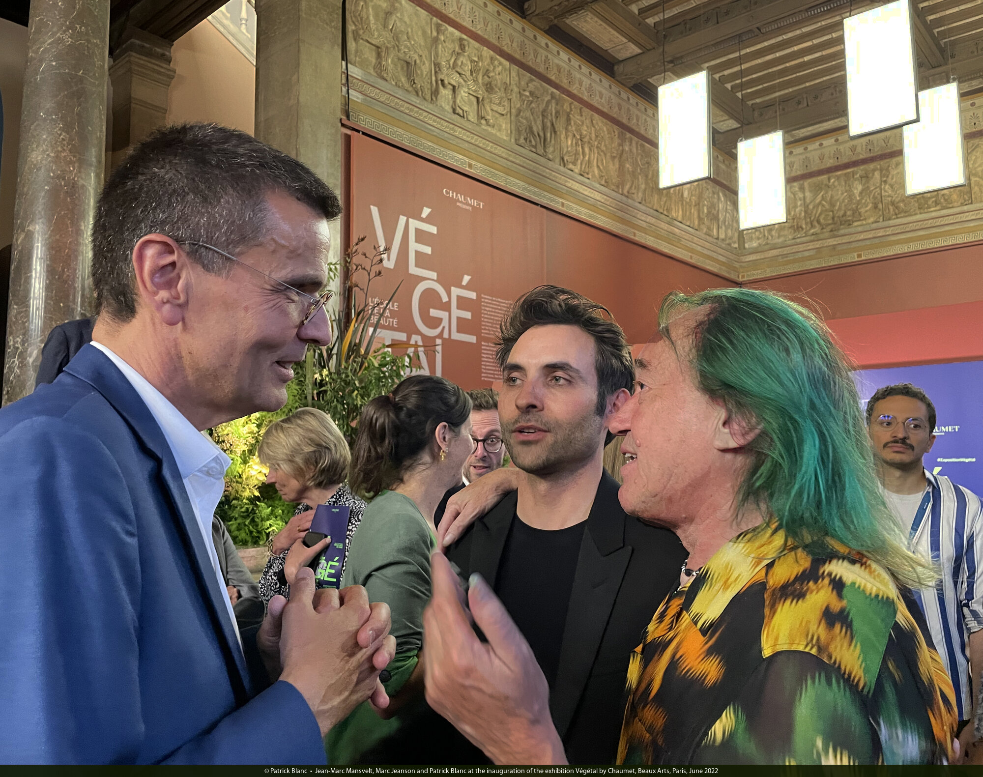 Jean-Marc Mansvelt, Marc Jeanson and Patrick Blanc at the inauguration of the exhibition Végétal by Chaumet, Beaux Arts, Paris, June 2022