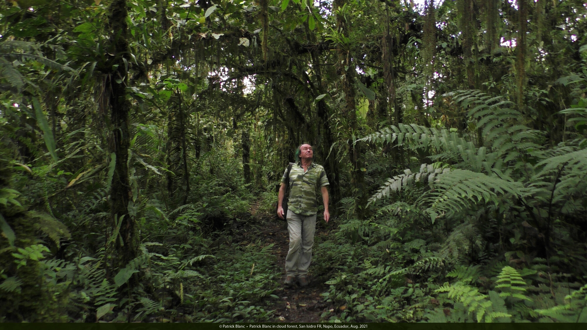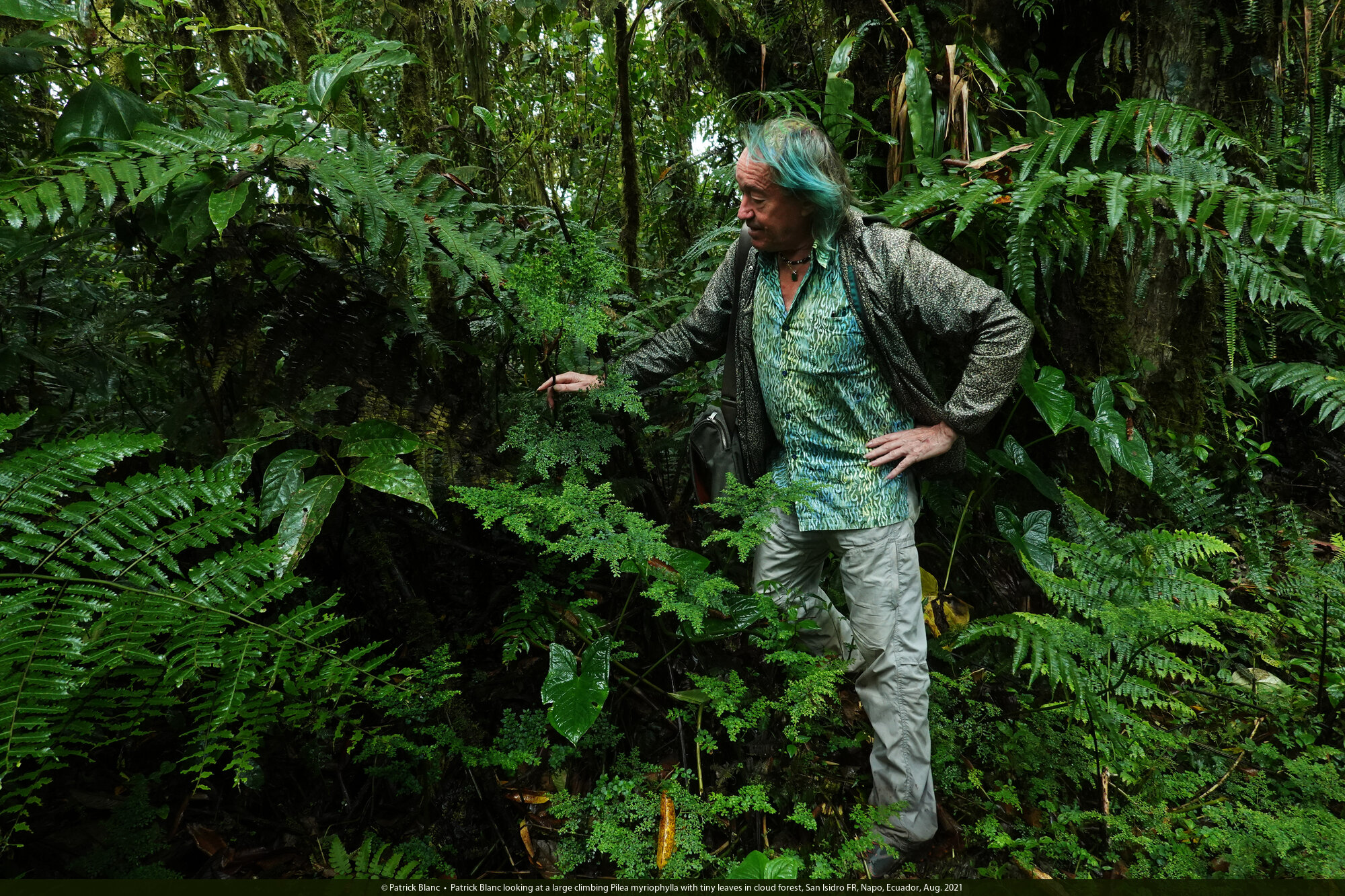 Patrick Blanc in cloud forest, San Isidro FR, Napo, Ecuador, Aug. 2021