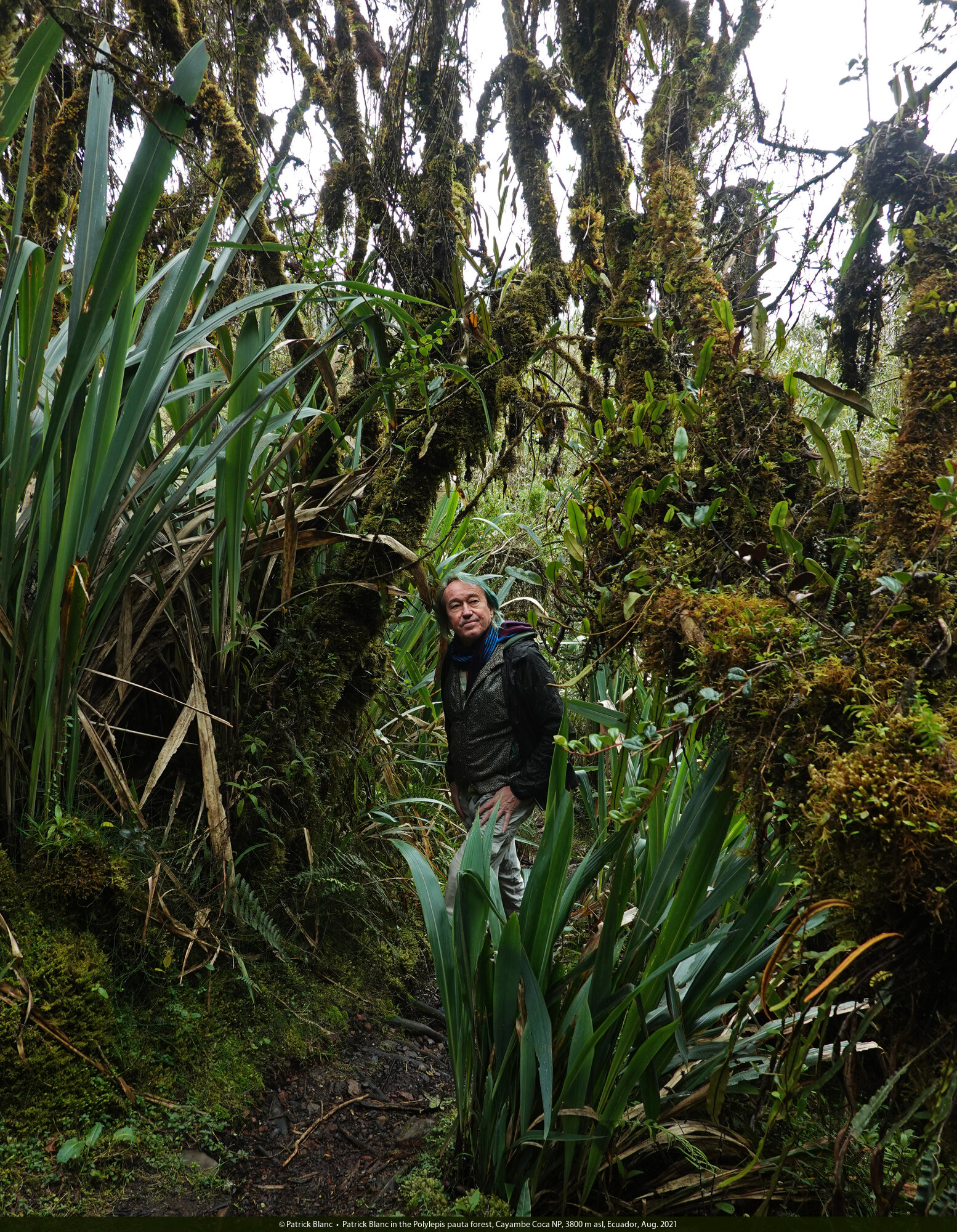 Patrick Blanc in the Polylepis pauta forest, Cayambe Coca NP, 3800 m asl, Ecuador, Aug. 2021