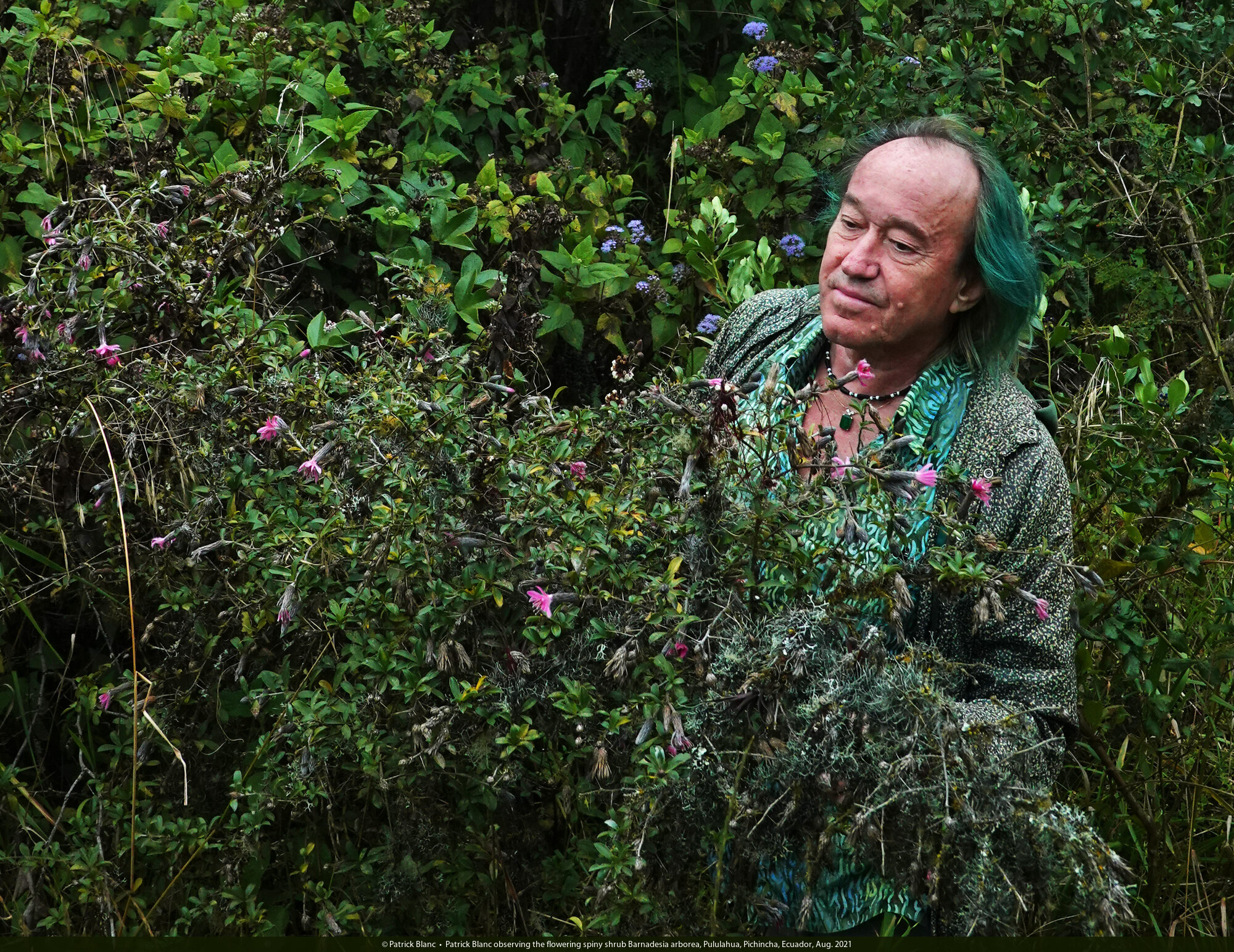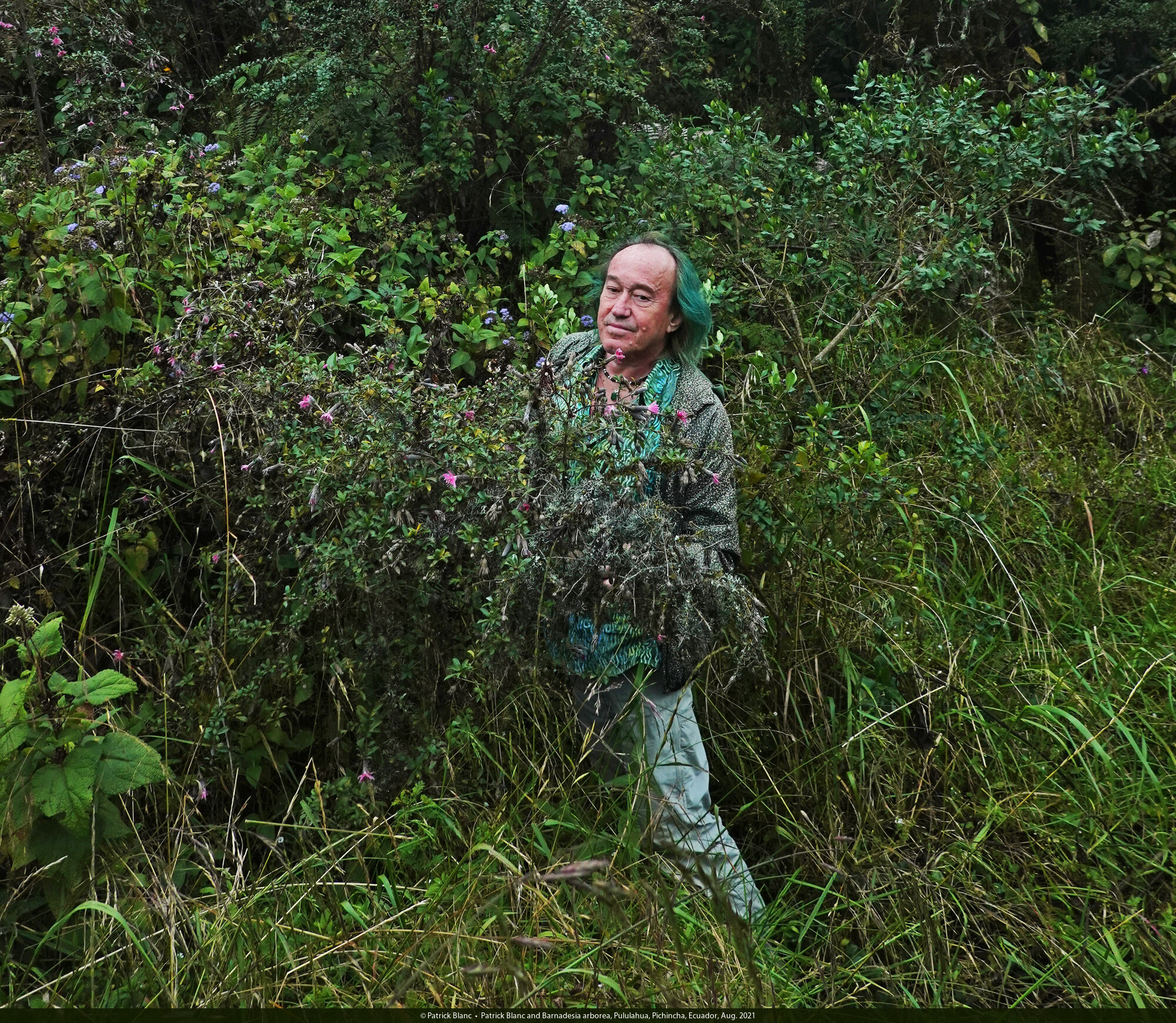 Patrick Blanc and Barnadesia arborea, Pululahua, Pichincha, Ecuador, Aug. 2021