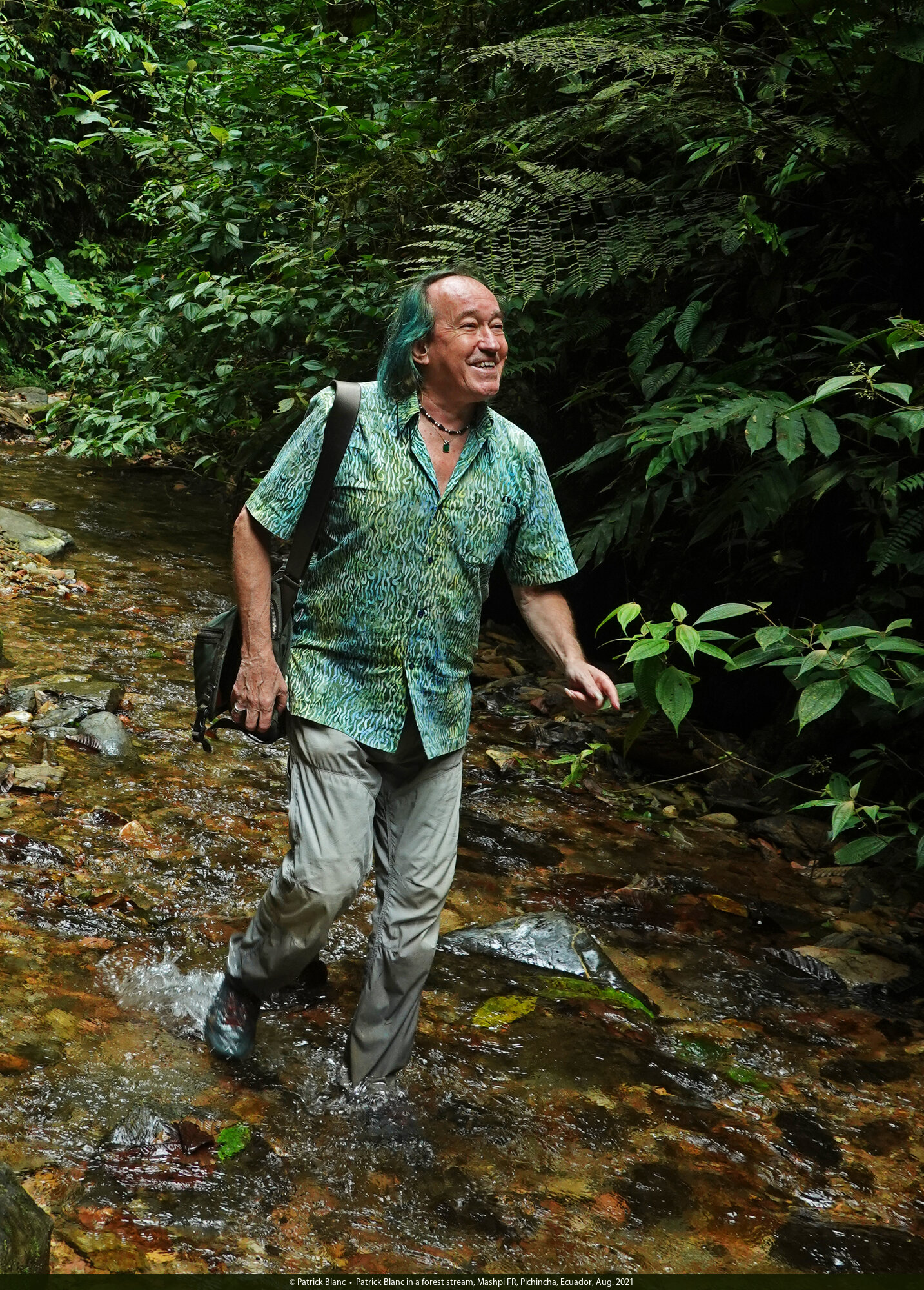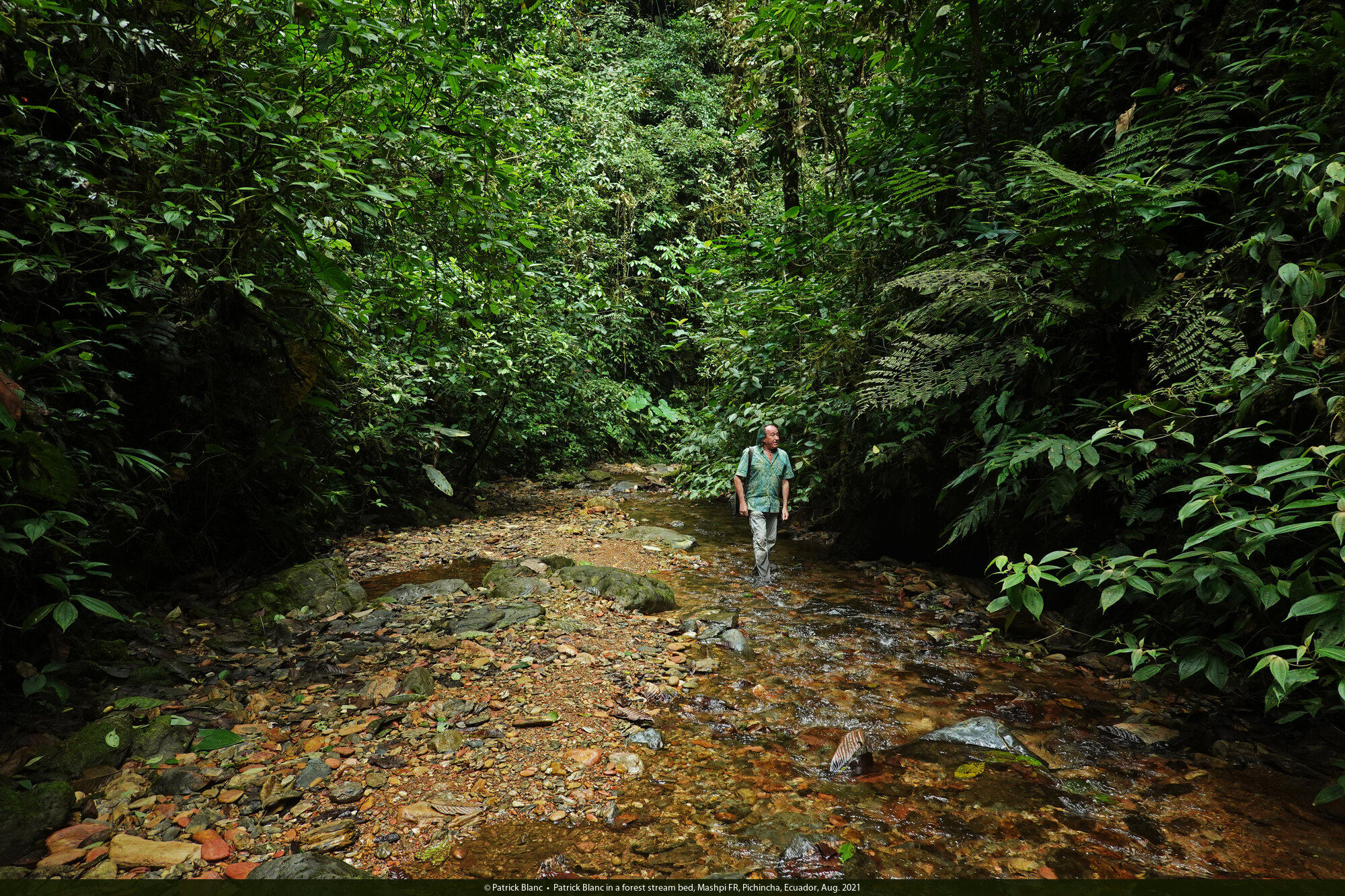 Patrick Blanc in a forest stream, Mashpi FR, Pichincha, Ecuador, Aug. 2021