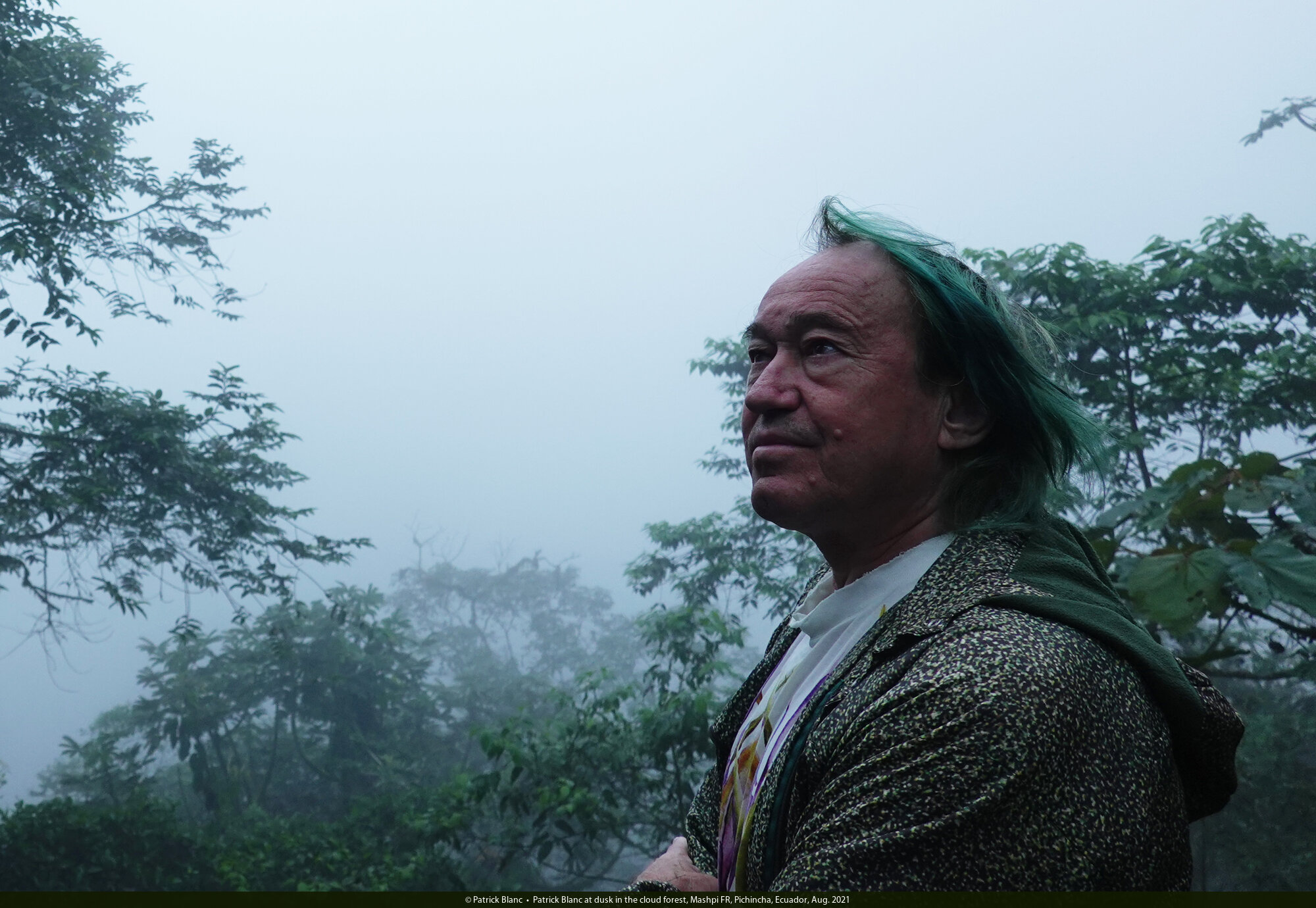 Patrick Blanc at dusk in the cloud forest, Mashpi FR, Pichincha, Ecuador, Aug. 2021