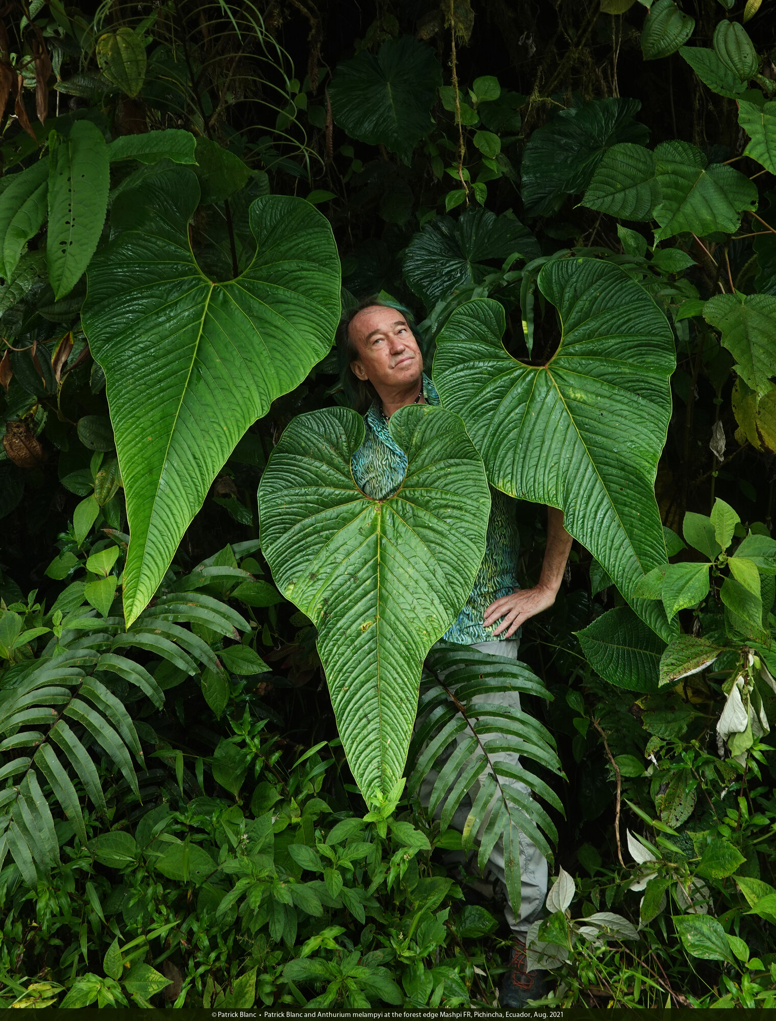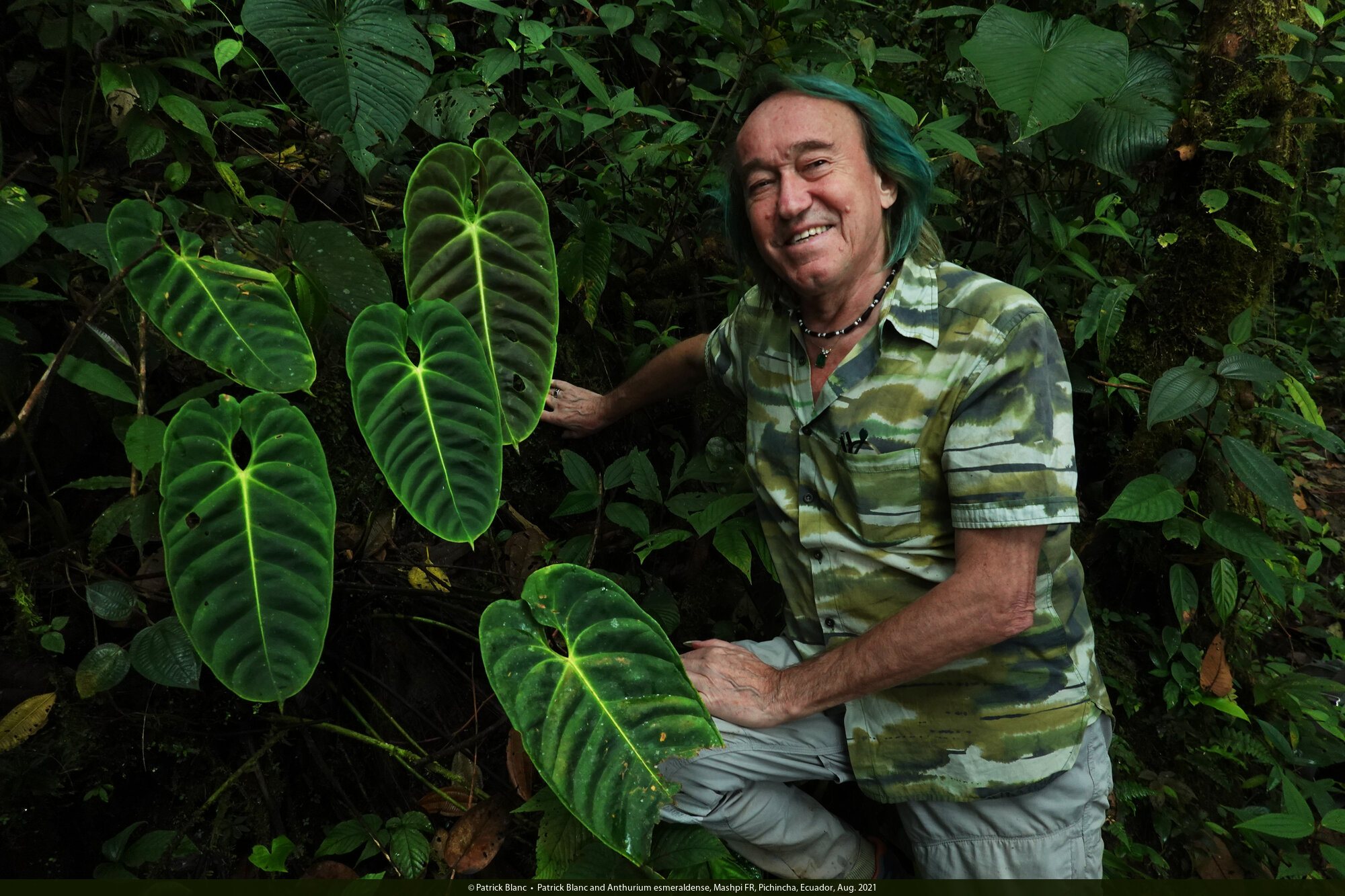 Patrick Blanc and Anthurium melampyi at the forest edge Mashpi FR, Pichincha, Ecuador, Aug. 2021
