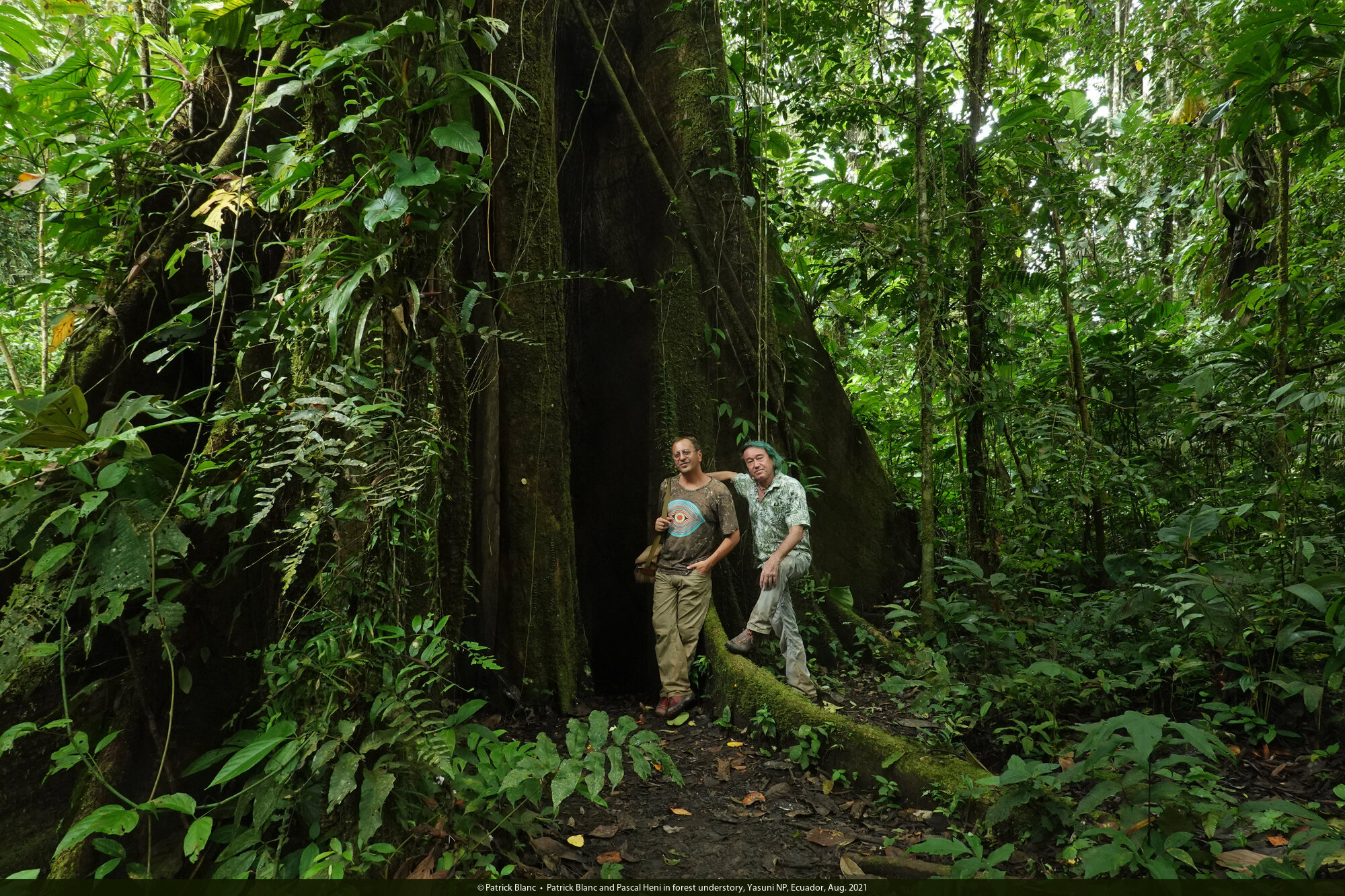 Patrick Blanc and Pascal Heni in forest understory, Yasuni NP, Ecuador, Aug. 2021