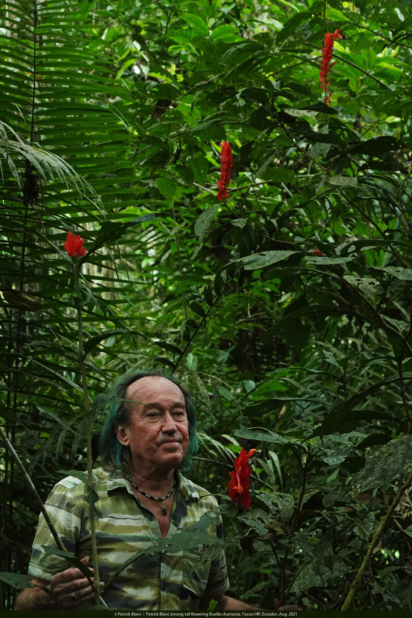 Patrick Blanc among tall flowering Ruellia chartacea, Yasuni NP, Ecuador, Aug. 2021