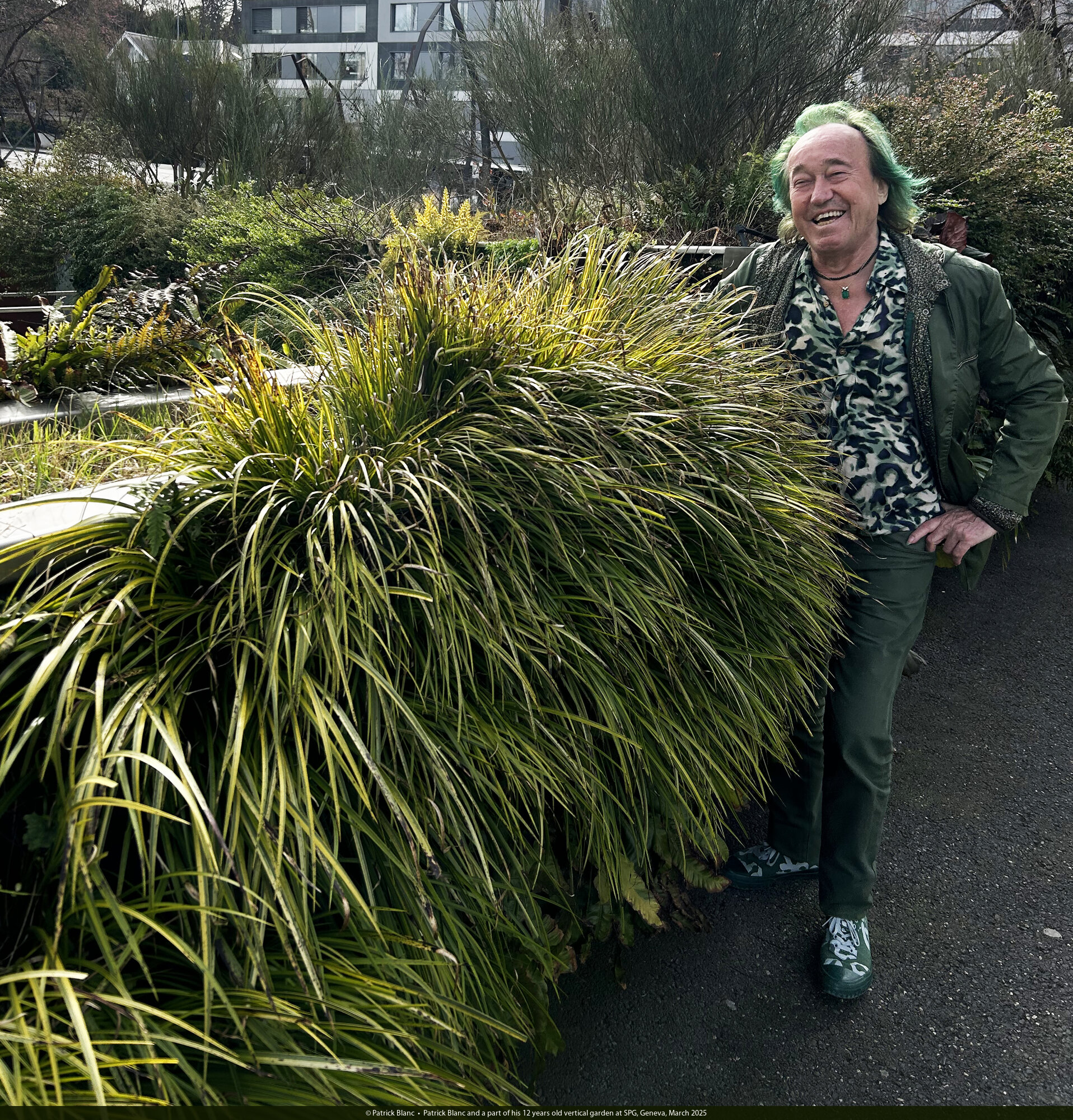Patrick Blanc and a part of his 12 years old vertical garden at SPG, Geneva, March 2025