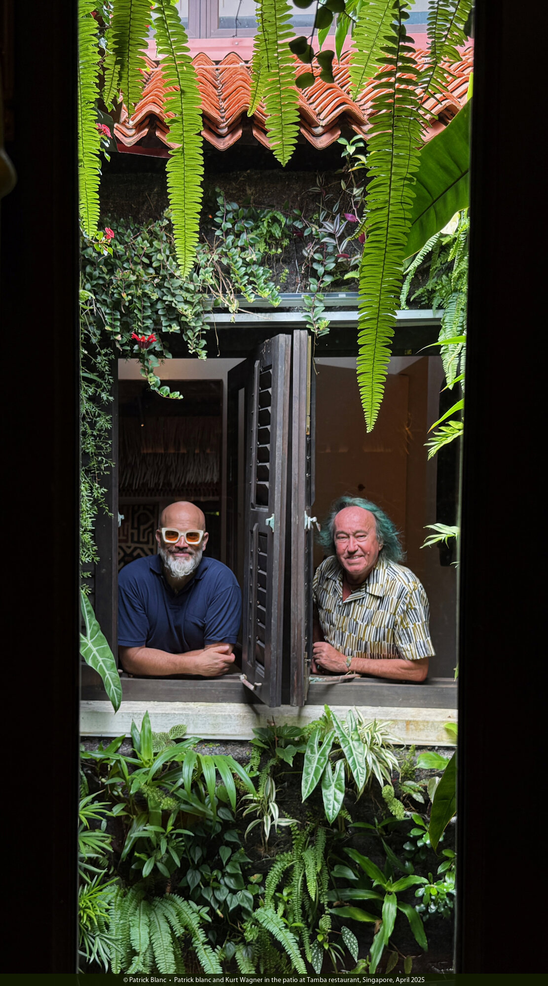 Patrick Blanc and Kurt Wagner in the patio at Tamba restaurant, Singapore, April 2025