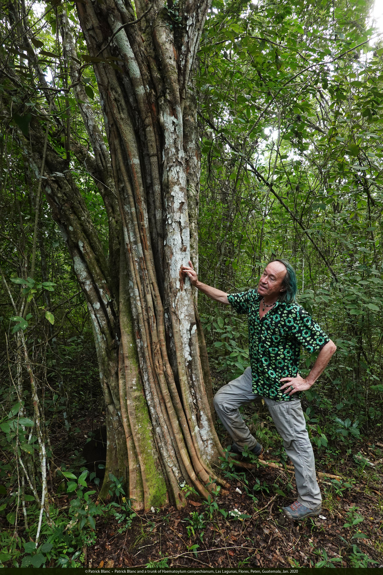 Patrick Blanc and a trunk of Haematoylum campechianum, Las Lagunas, Flores, Peten, Guatemala, Jan. 2020