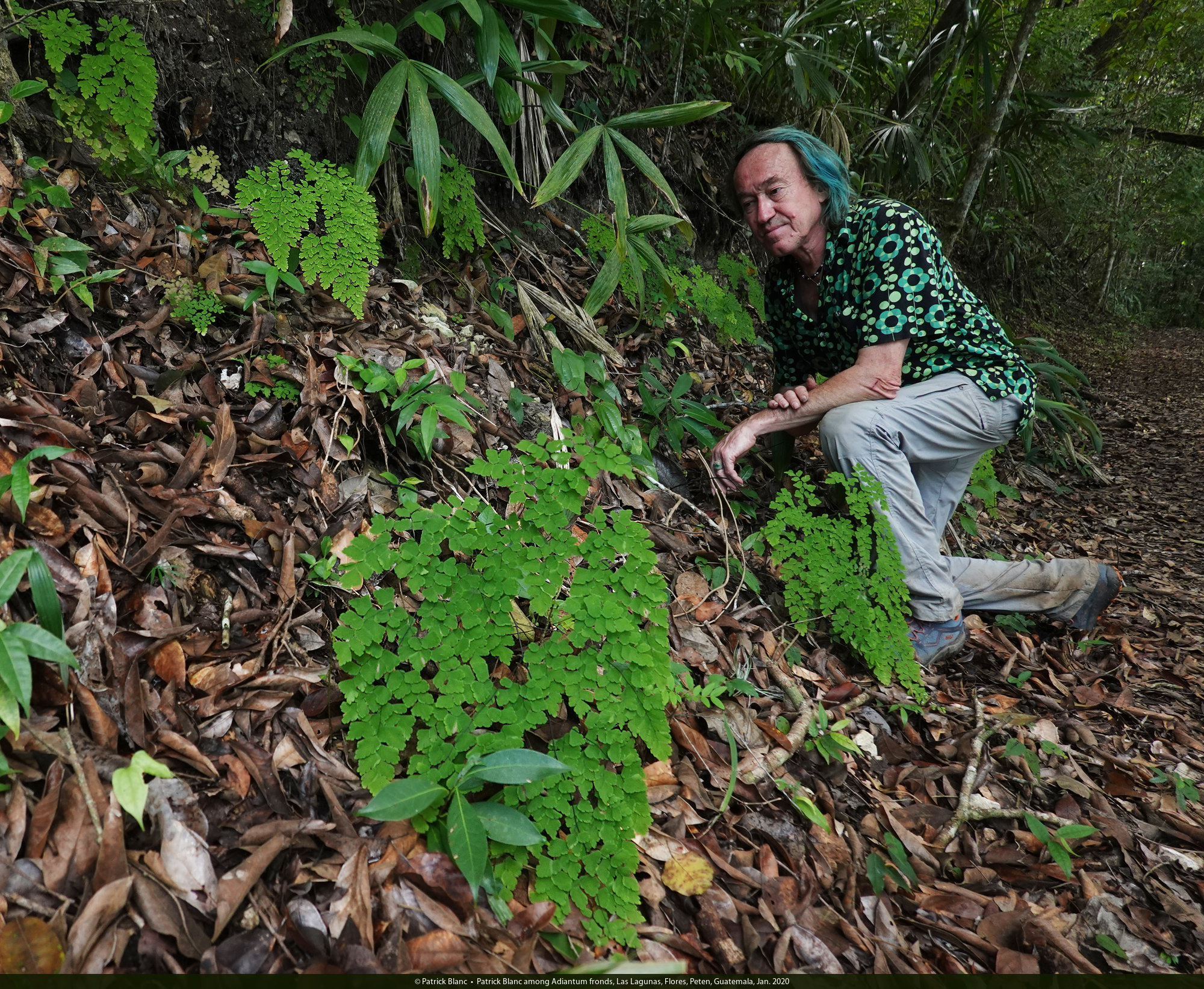 Patrick Blanc among Adiantum fronds, Las Lagunas, Flores, Peten, Guatemala, Jan. 2020