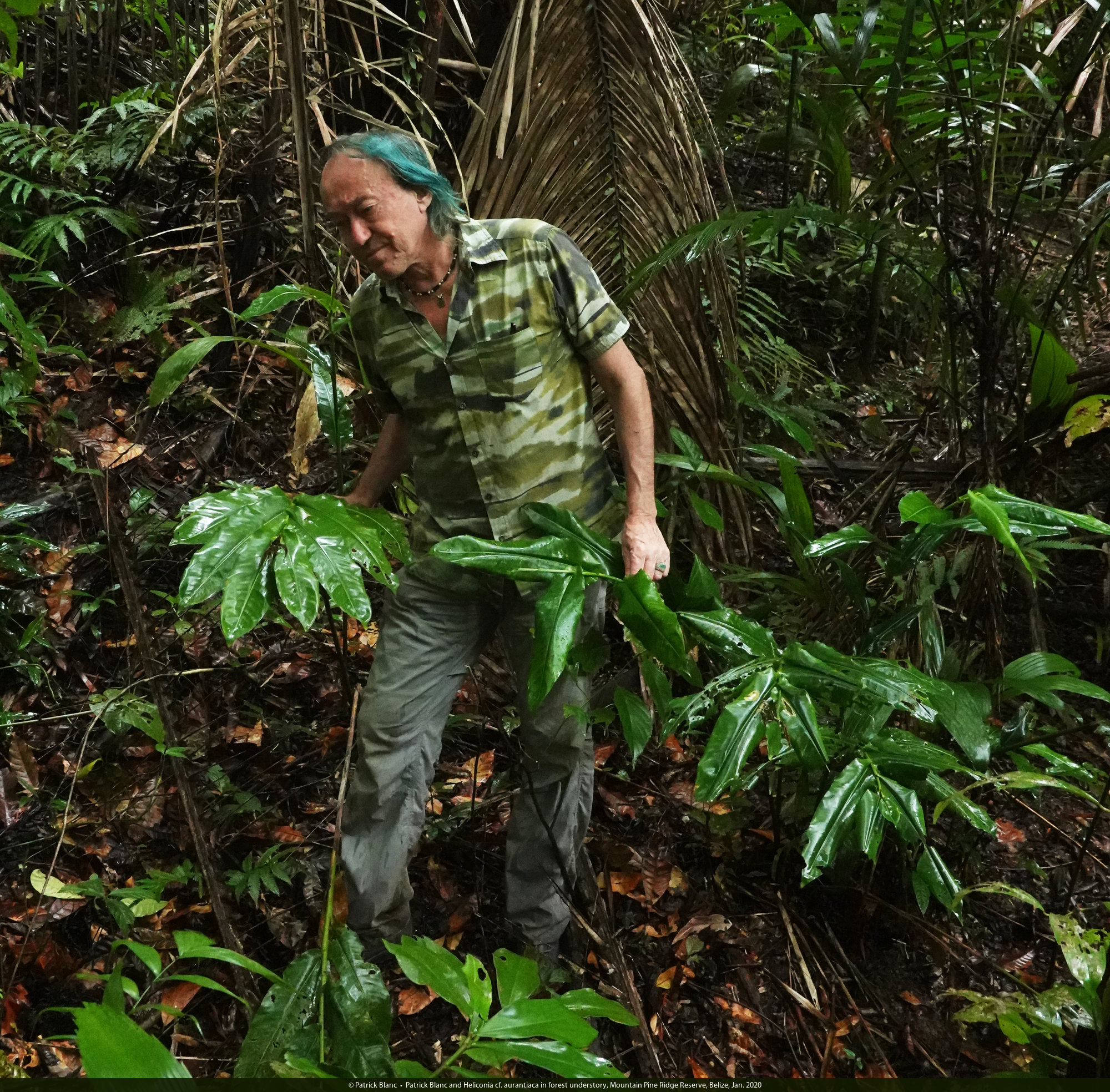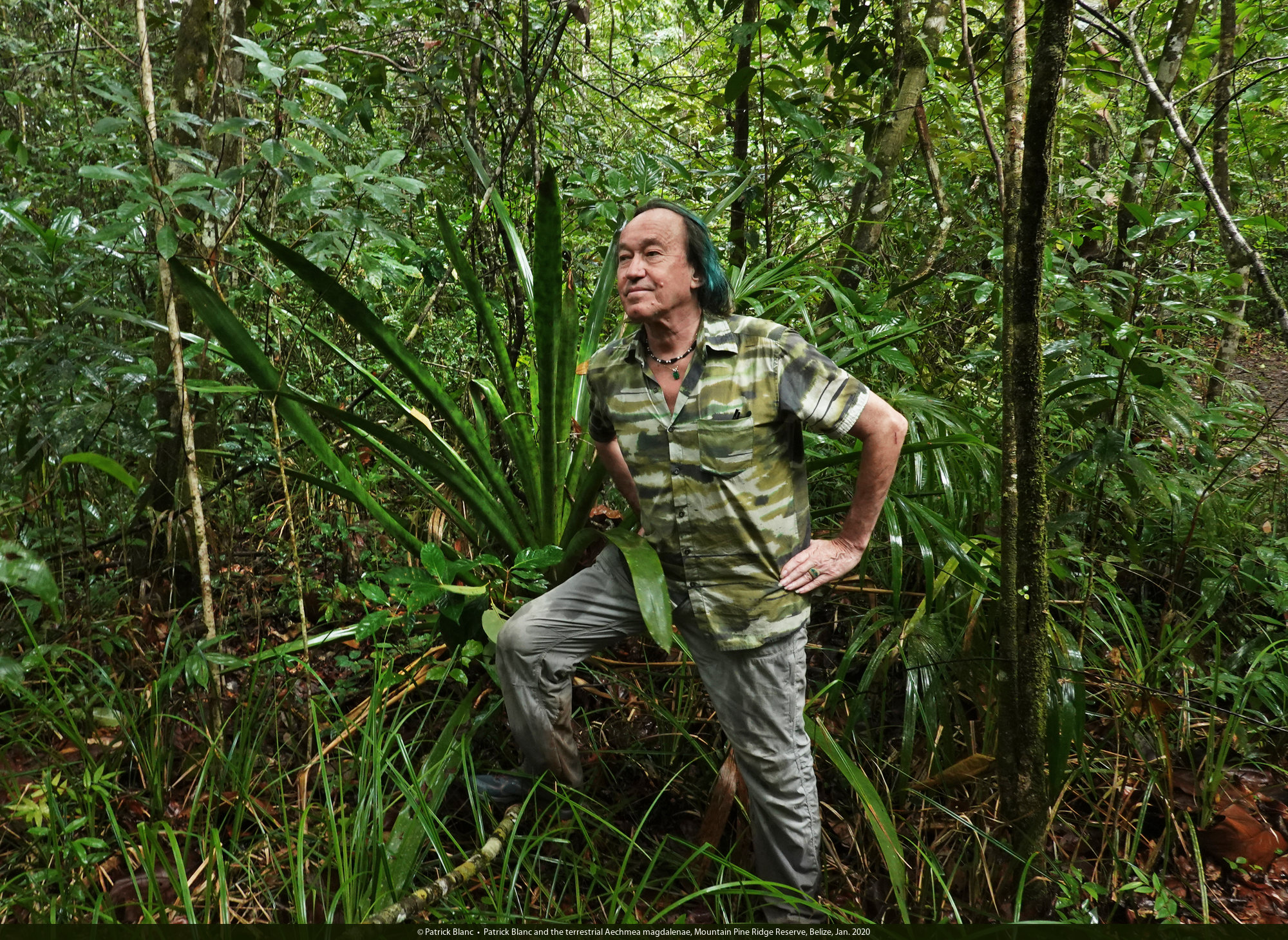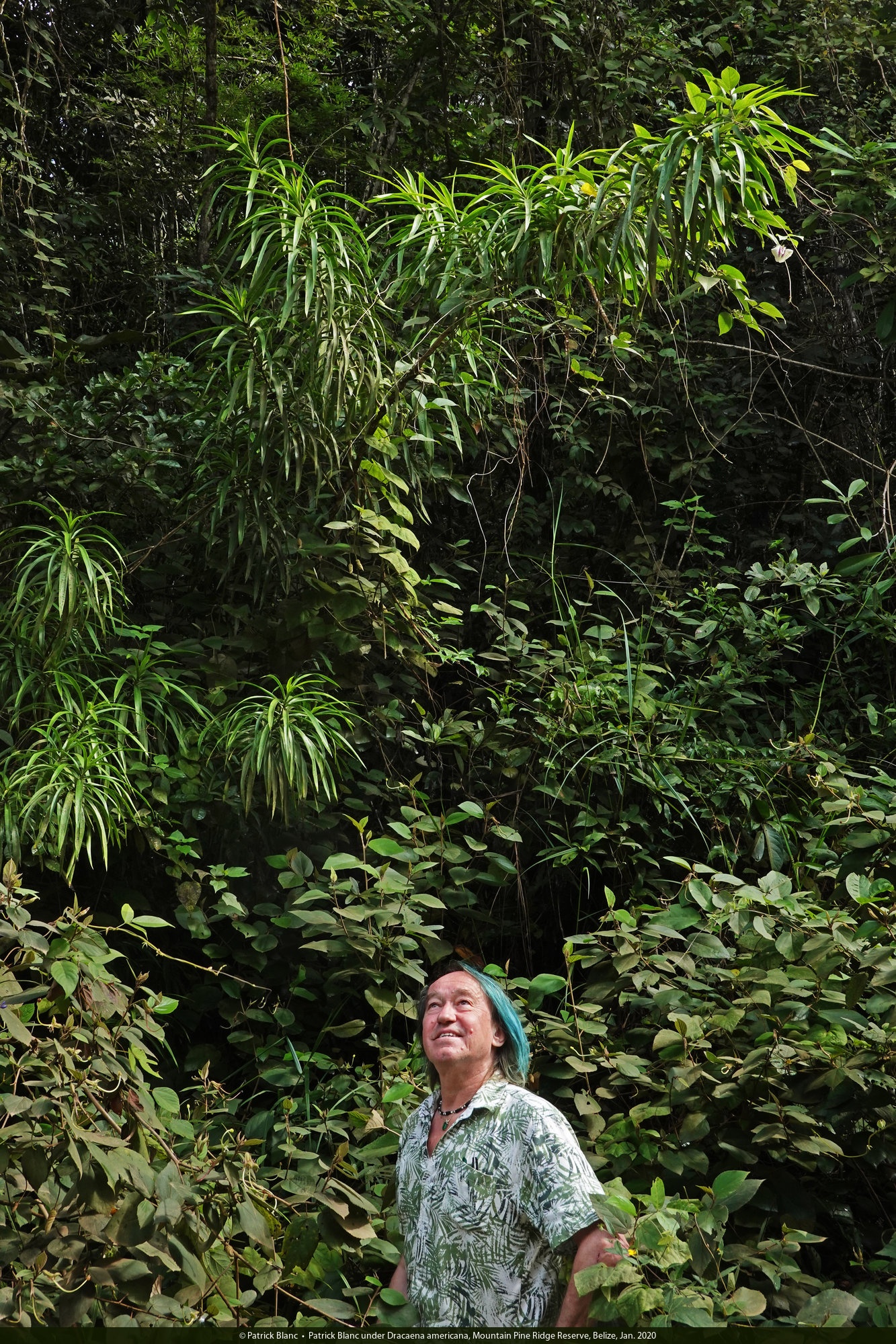 Patrick Blanc under Dracaena americana, Mountain Pine Ridge Reserve, Belize, Jan. 2020