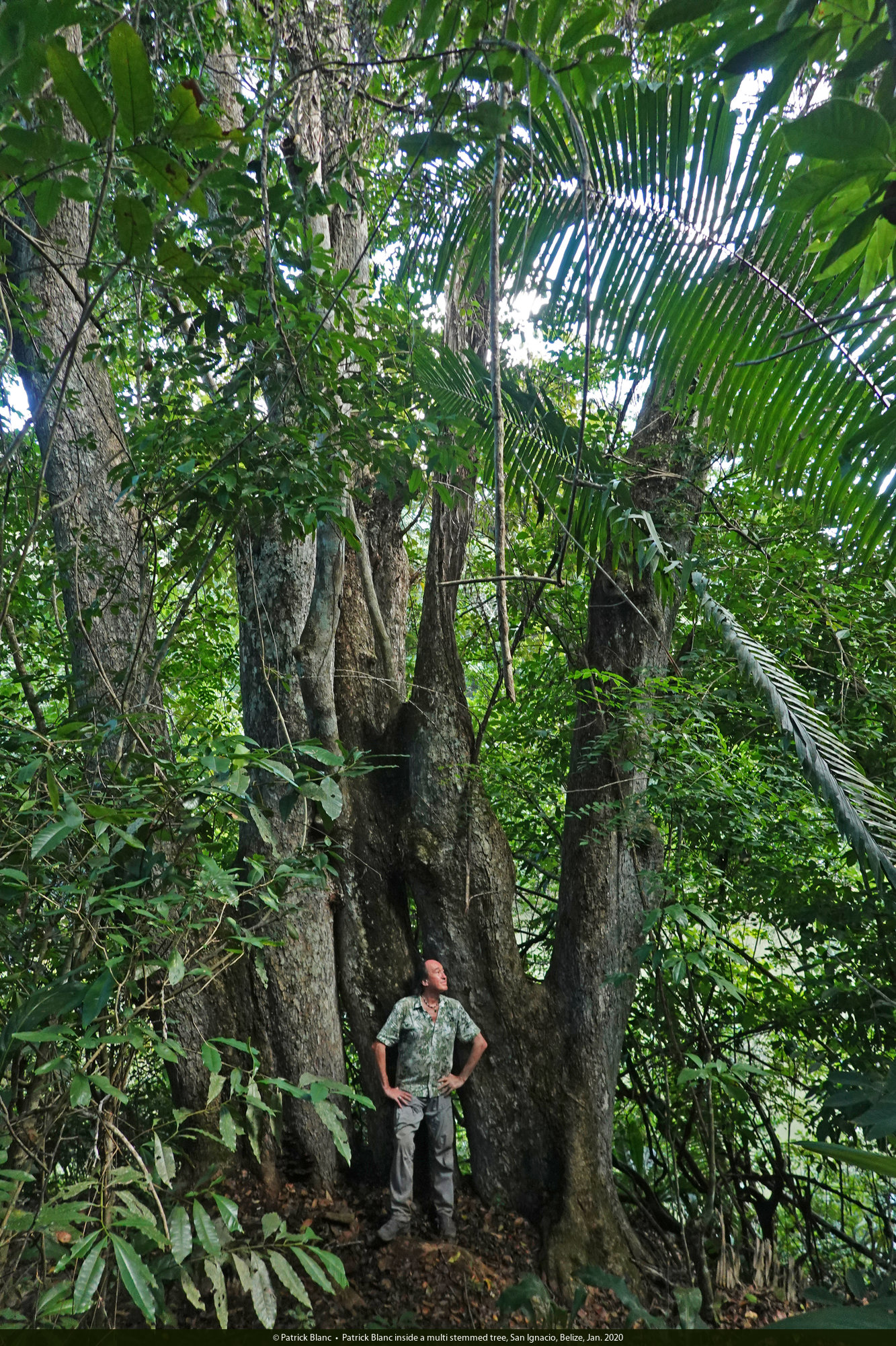 Patrick Blanc inside a multi stemmed tree, San Ignacio, Belize, Jan. 2020