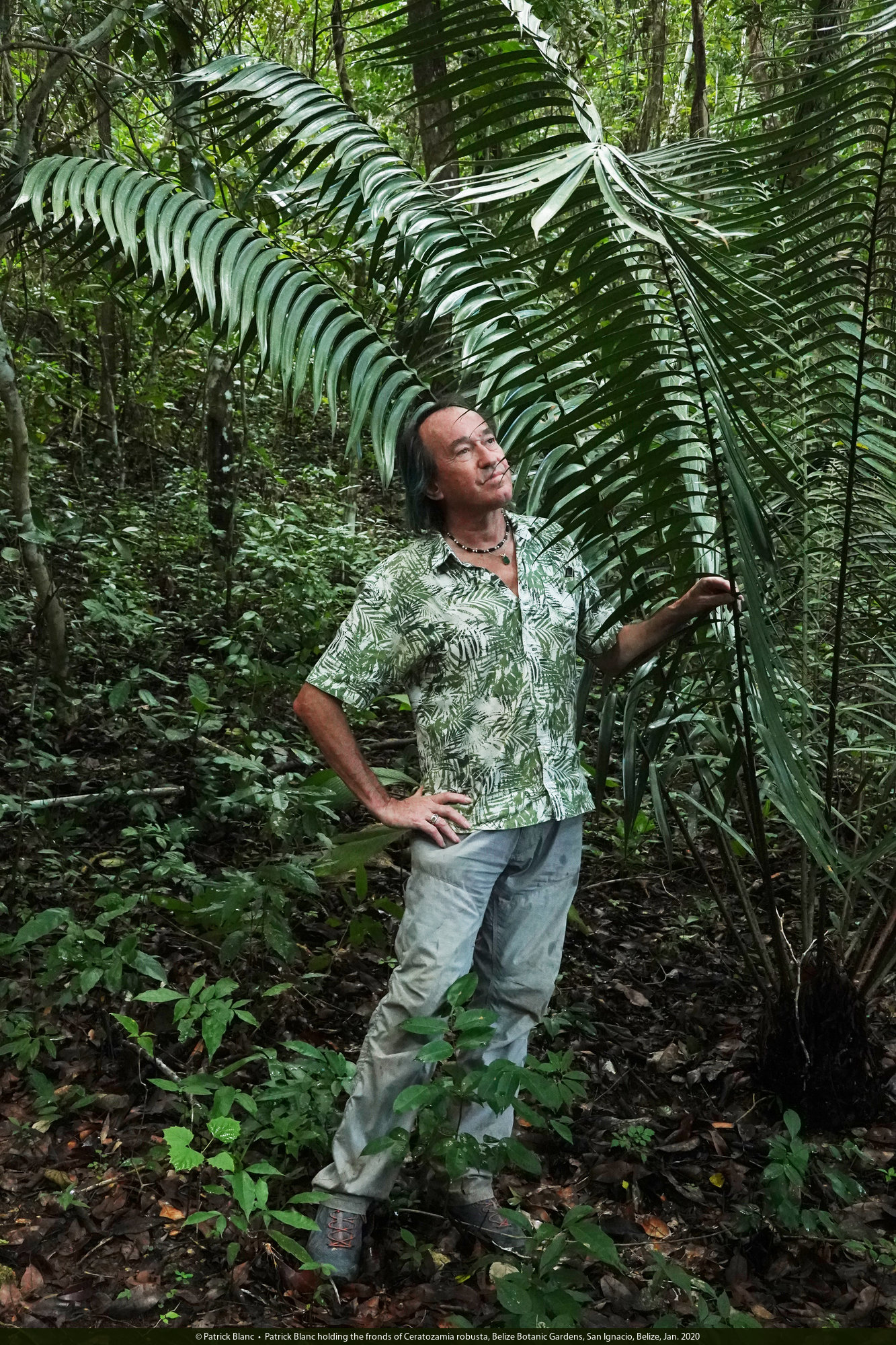 Patrick Blanc inside Ceratozamia robusta, Belize Botanic Gardens, San Ignacio, Belize, Jan. 2020