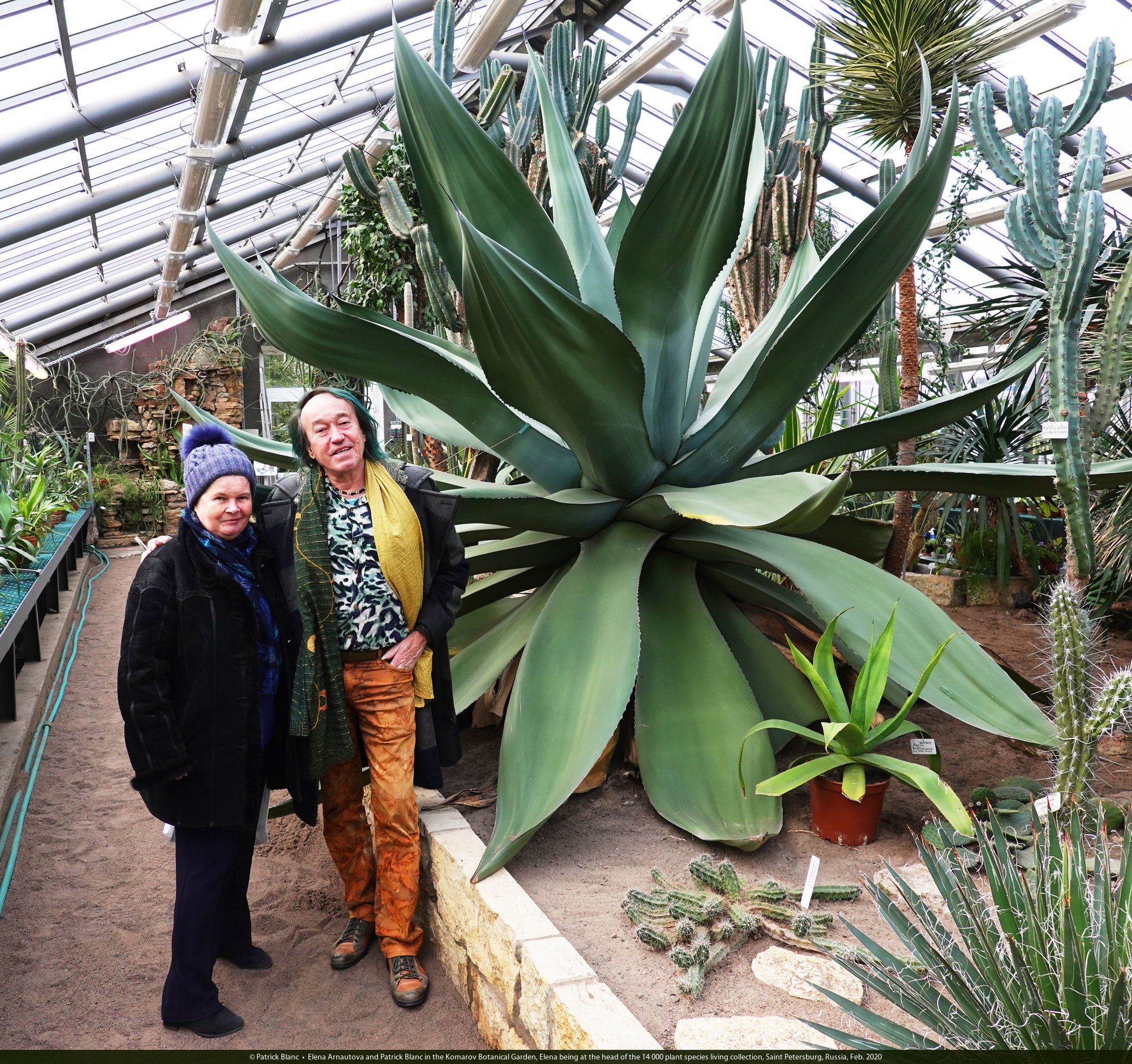 Elena Arnautova and Patrick Blanc in the Komarov Botanical Garden, Elena being at the head of the 14 000 plant species living collection, Saint Petersburg, Russia, Feb. 2020