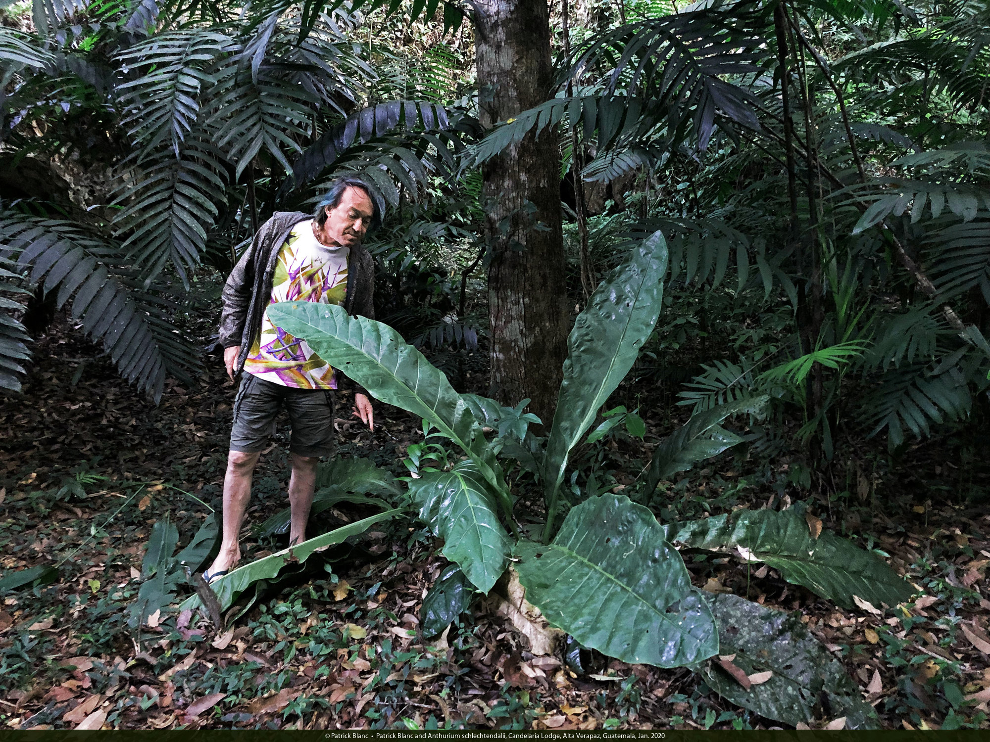 Patrick Blanc and Anthurium schlechtendalii, Candelaria Lodge, Alta Verapaz, Guatemala, Jan. 2020
