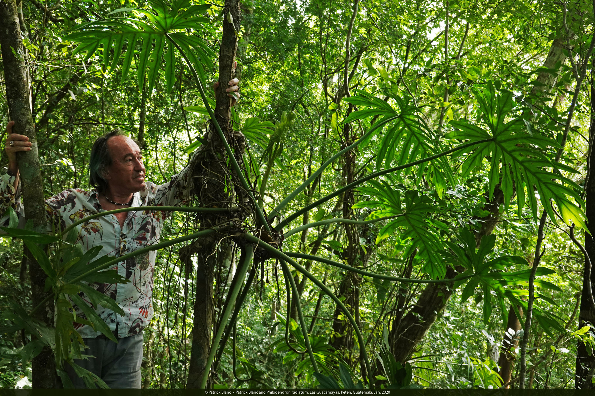 Patrick Blanc and Philodendron radiatum, Las Guacamayas, Peten, Guatemala, Jan. 2020