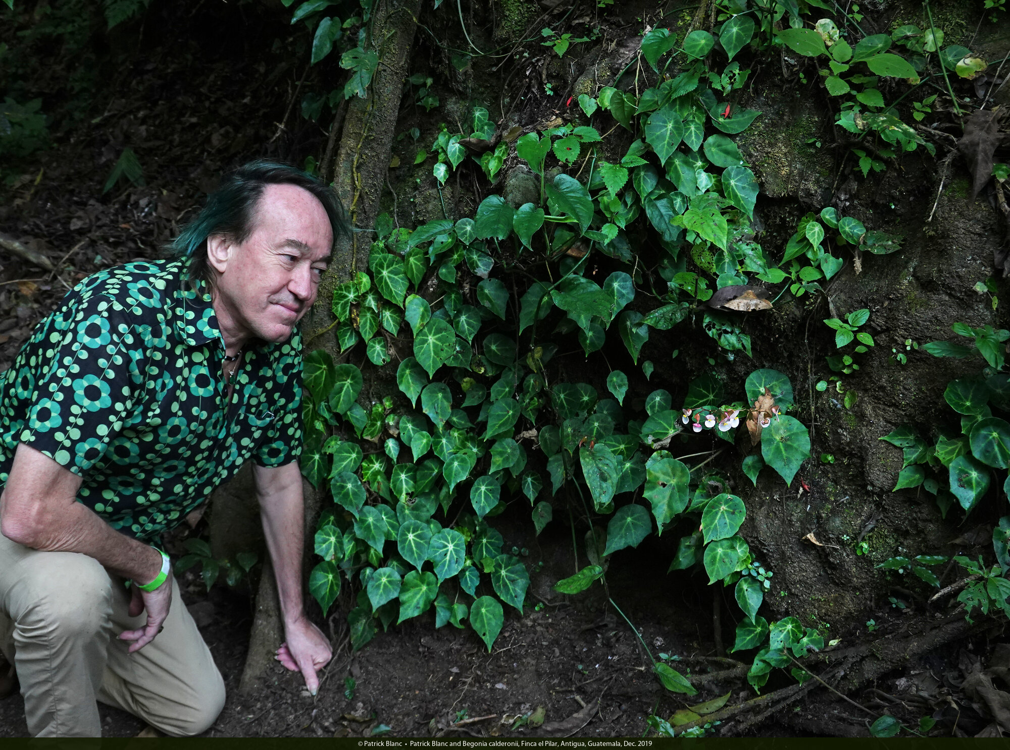 Patrick Blanc and Begonia calderonii, Finca el Pilar, Antigua, Guatemala, Dec. 2019