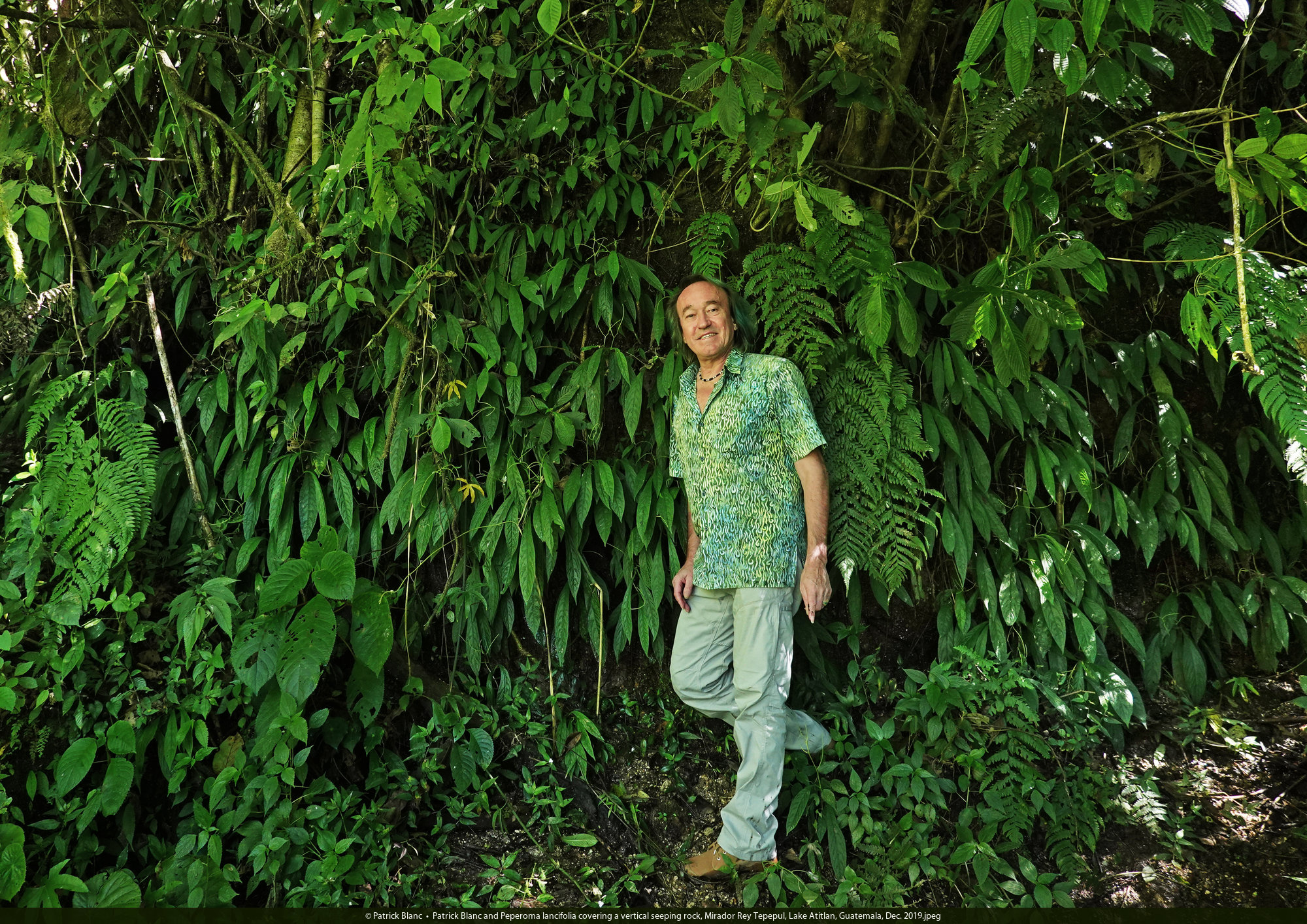 Patrick Blanc and Syngonium steyermarkii, Mirador Rey Tepepul, Lake Atitlan, Guatemala, Dec. 2019